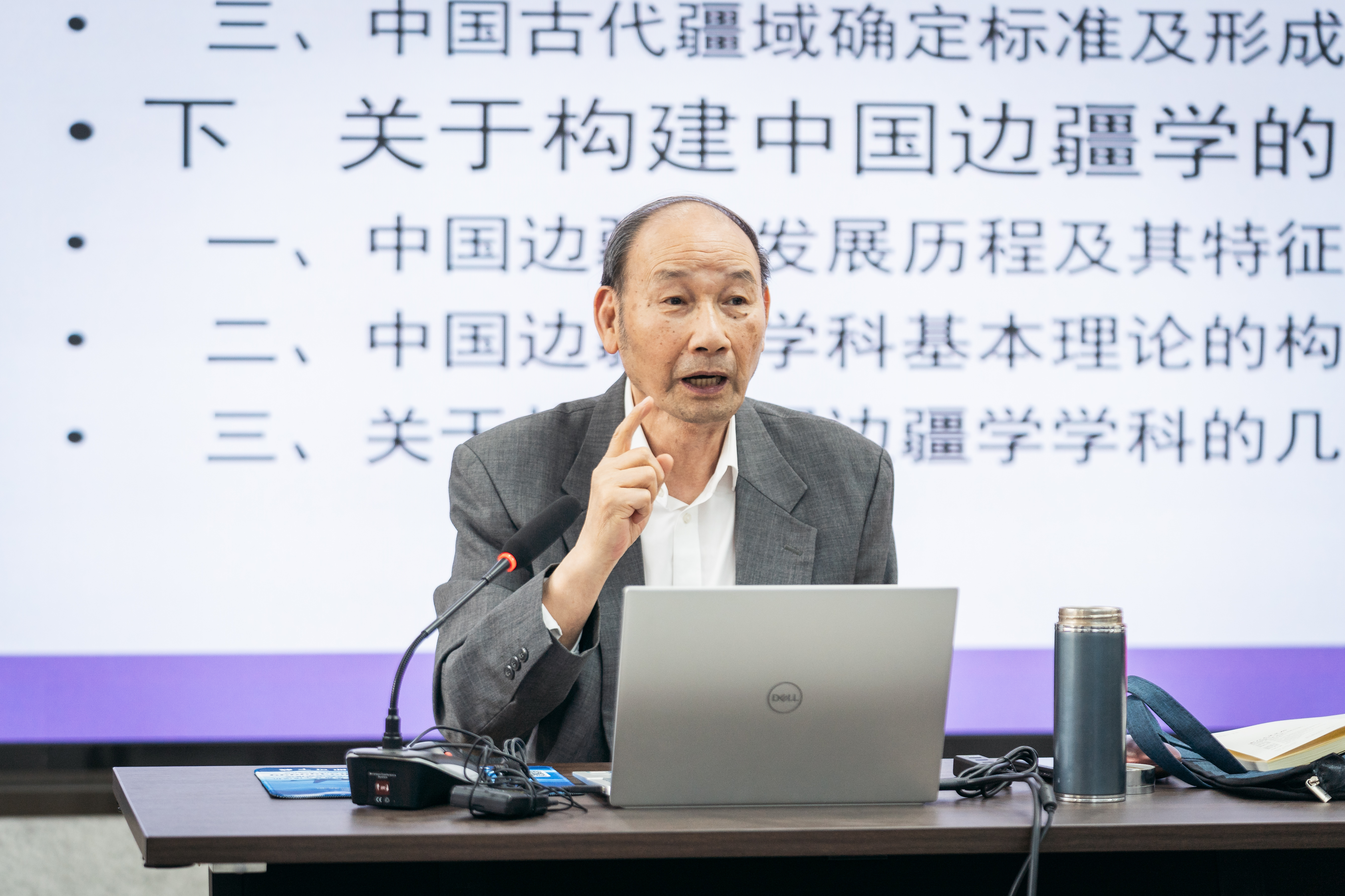 本次讲座分为“中国边疆史—古代疆域、边疆理论若干问题”与“关于构建中国边疆学的几点思考”两部分。在第一部分中,周伟洲教授首先对“历史上的中国”概念进行了介绍,之后指出只有古代中国和近现代中国才存在疆域问题,中国历史上的“天下观”历代的内含及其发展是十分复杂的,中国历史上的统一与分裂都是相对的,绝没有与今天疆域一致的绝对统一。之后,周伟洲教授在这一基础上结合多家观点对“边疆”一词的含义进行了讨论。关于中国疆域确定标准及形成规律、特点等问题,周伟洲教授也一一作了解释,指出古代中国疆域确定的标准只有行政管辖这一标准,其发展阶段主要分为古代疆域和近现代疆域两大阶段。在第二部分中,周伟洲教授回顾了中国边疆学发展的历程,将其分为清代乾嘉、道光时期的萌芽时期、上世纪30至40年代的发展和初步形成时期以及改革开放后的研究繁荣及重新建构中国边疆学学科的时期三个阶段,并对中国边疆学学科基本理论的构建进行了介绍。最后,周伟洲教授提出构建中国边疆学学科应当加强理论建设探讨、重视边疆现实问题、建立专门边疆研究机构等7条宝贵建议。周伟洲教授探讨的既是理论问题,也是与国家的边疆治理密切相关的现实问题,体现了他致力于为国家边疆治理理论不断探索的使命感。