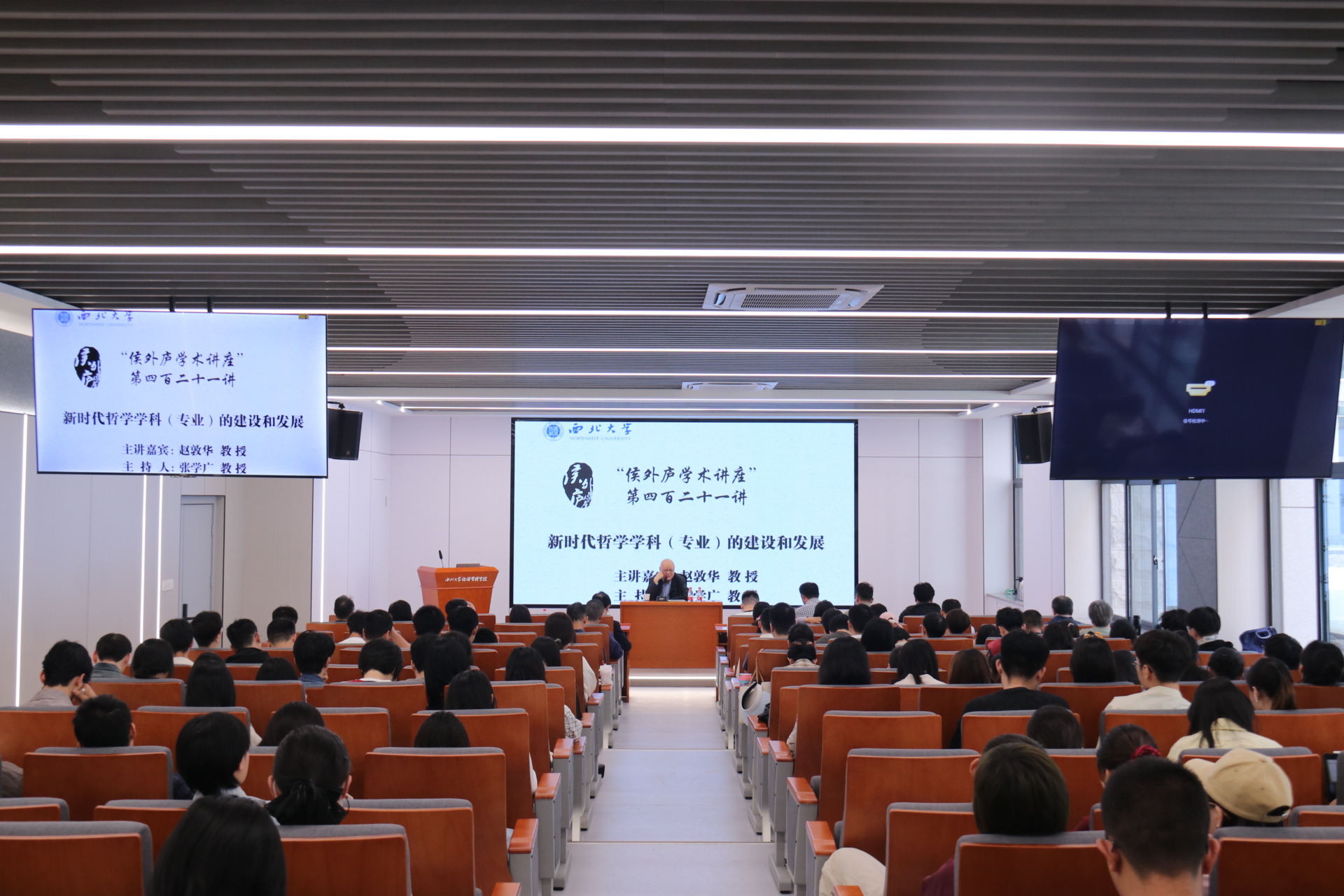 4月16日下午,北京大学博雅讲席教授、全国高校教学名师、国务院学位委员会第六、七届哲学学科评议组召集人赵敦华教授做客米兰买球“侯外庐学术讲座”第421讲,作了题为“新时代哲学学科(专业)的建设和发展”的学术讲座。讲座由哲学学院负责人主持,校内外师生170余人到场聆听和学习。