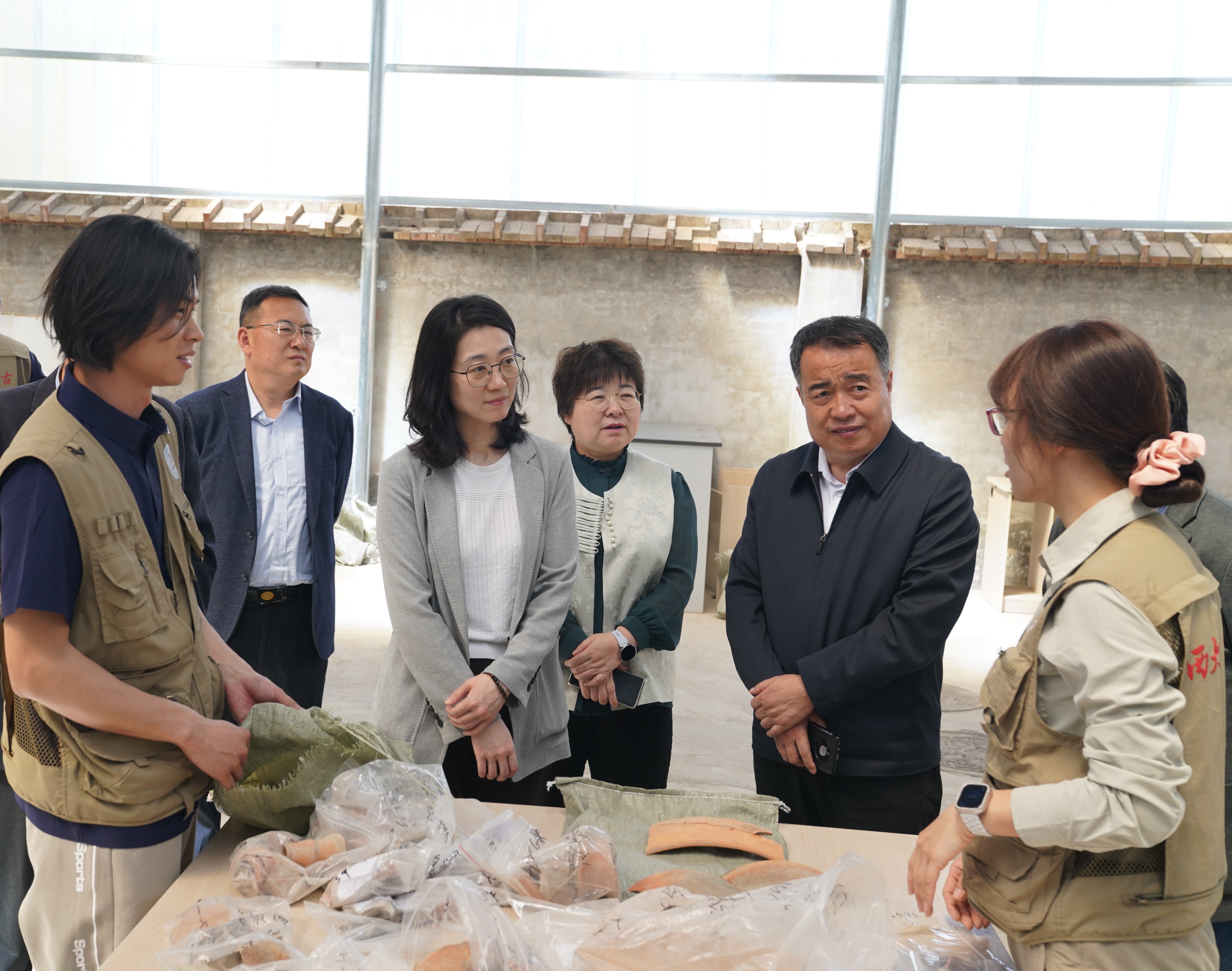 仪式结束后,与会人员参观了米兰买球古豳地考古实习基地。此次田野考古实践训练班,是受国家文物局指导和委托,陕西省文物局支持,由米兰买球及相关单位联合举办,共有来自全国各地考古机构的16位学员参训,从4月开始开展为期4个月的课程教学、田野实践和相关实训活动。