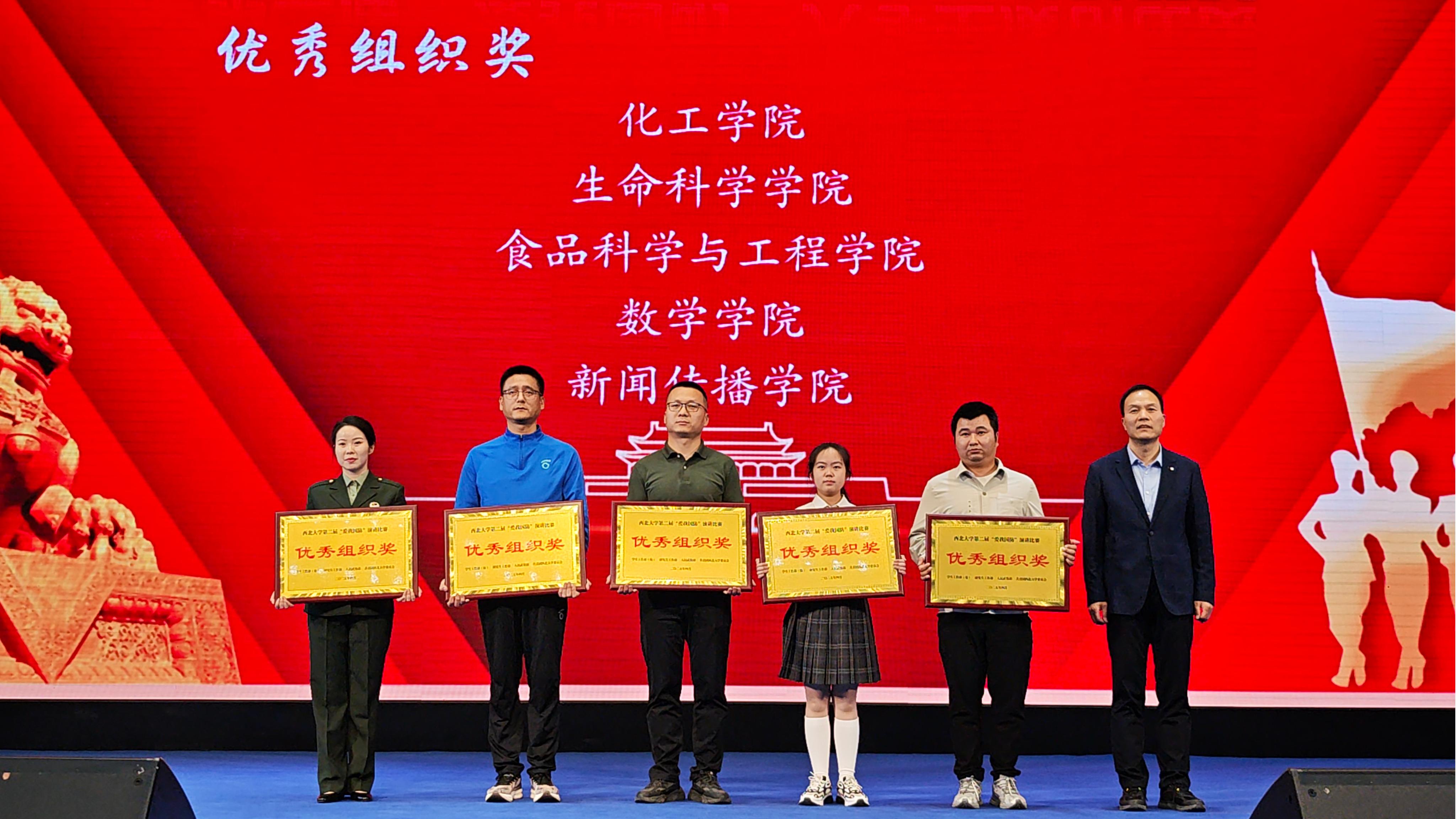 经过激烈比拼,最终,新闻传播学院耿天蓝、数学学院李怡蕾获一等奖;城市与环境学院杨家慧、生命科学学院余杰、文学院宋心月获二等奖;公共管理学院刘如霞、食品科学与工程学院王子怡、经济管理学院王煜彤、艺术学院储丽丽、化工学院李博丹获三等奖;新闻传播学院、数学学院、生命科学学院、化工学院、食品科学与工程学院获优秀组织奖。校领导和相关职能部门负责人为获奖院(系)和个人颁奖。