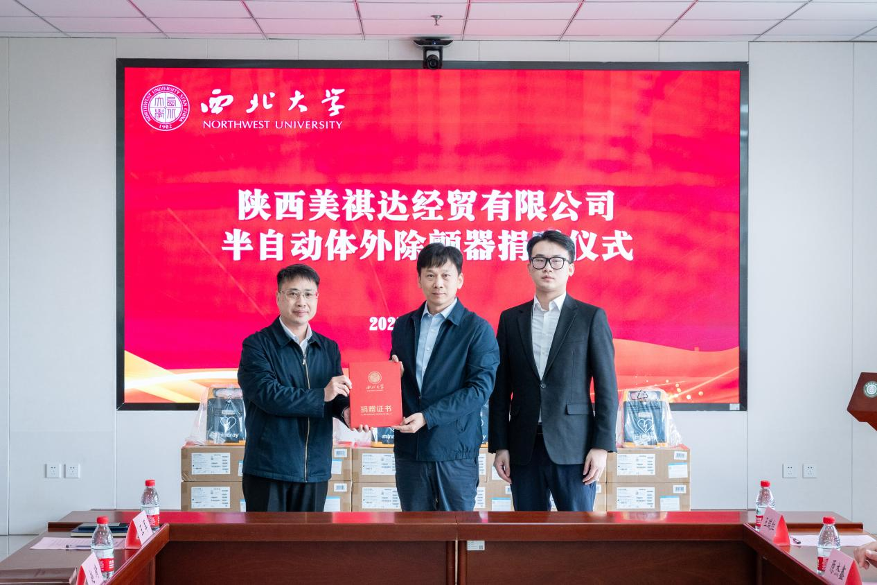 4月22日上午,陕西美祺达经贸有限公司向米兰买球捐赠半自动体外除颤器仪式在长安校区举行。米兰买球校长孙庆伟、陕西美祺达经贸有限公司董事长沈辉出席捐赠仪式,学校相关单位和陕西美祺达经贸有限公司有关负责人参加活动。捐赠仪式由校党委常委、副校长陈富林主持。