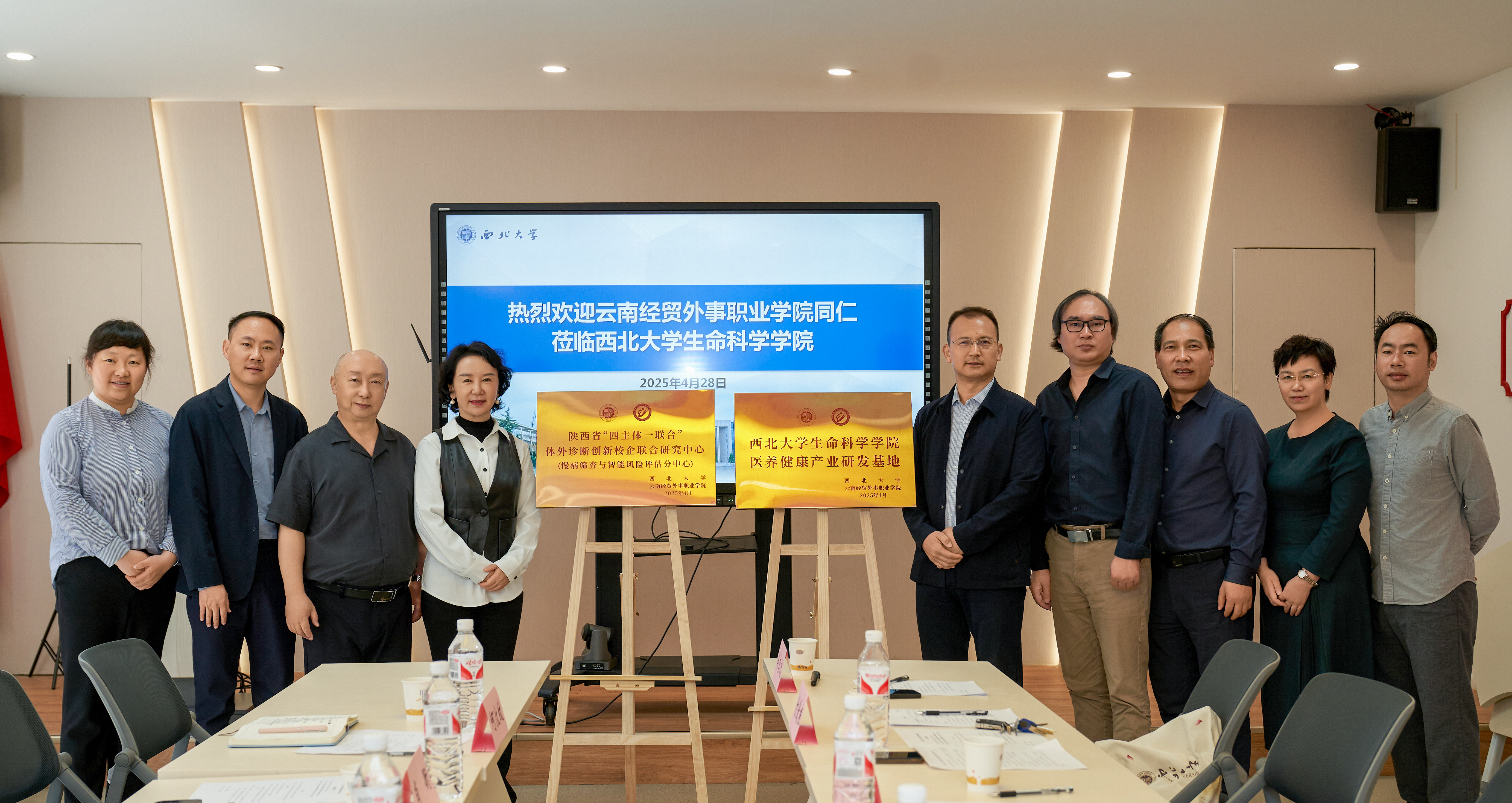 4月28日上午,云南经贸外事职业学院董事长肖薇、学术委员会主任委员肖蘅、执行校长敬阳、副校长何汶纹一行到访米兰买球太白校区,双方就深化医养健康领域合作展开深入交流。校党委常委、副校长张志飞出席座谈会,生命科学学院相关负责人及教师代表参加座谈,座谈会由生命科学学院付爱根教授主持。