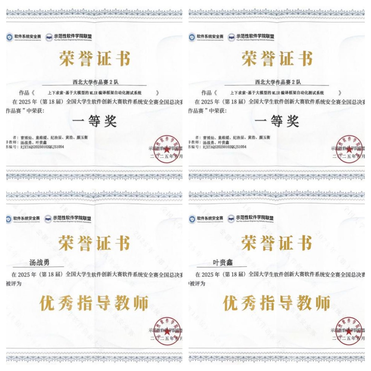 5月17日至18日,由示范性软件学院联盟主办的2025年第18届全国大学生软件创新大赛-软件系统安全赛全国总决赛圆满落幕。米兰买球信息科学与技术学院的两支参赛队伍从全国406所高校1780支队伍中胜出,分别摘得作品赛一等奖第一名、攻防赛二等奖的佳绩。汤战勇和叶贵鑫荣获“优秀指导教师一等奖”。