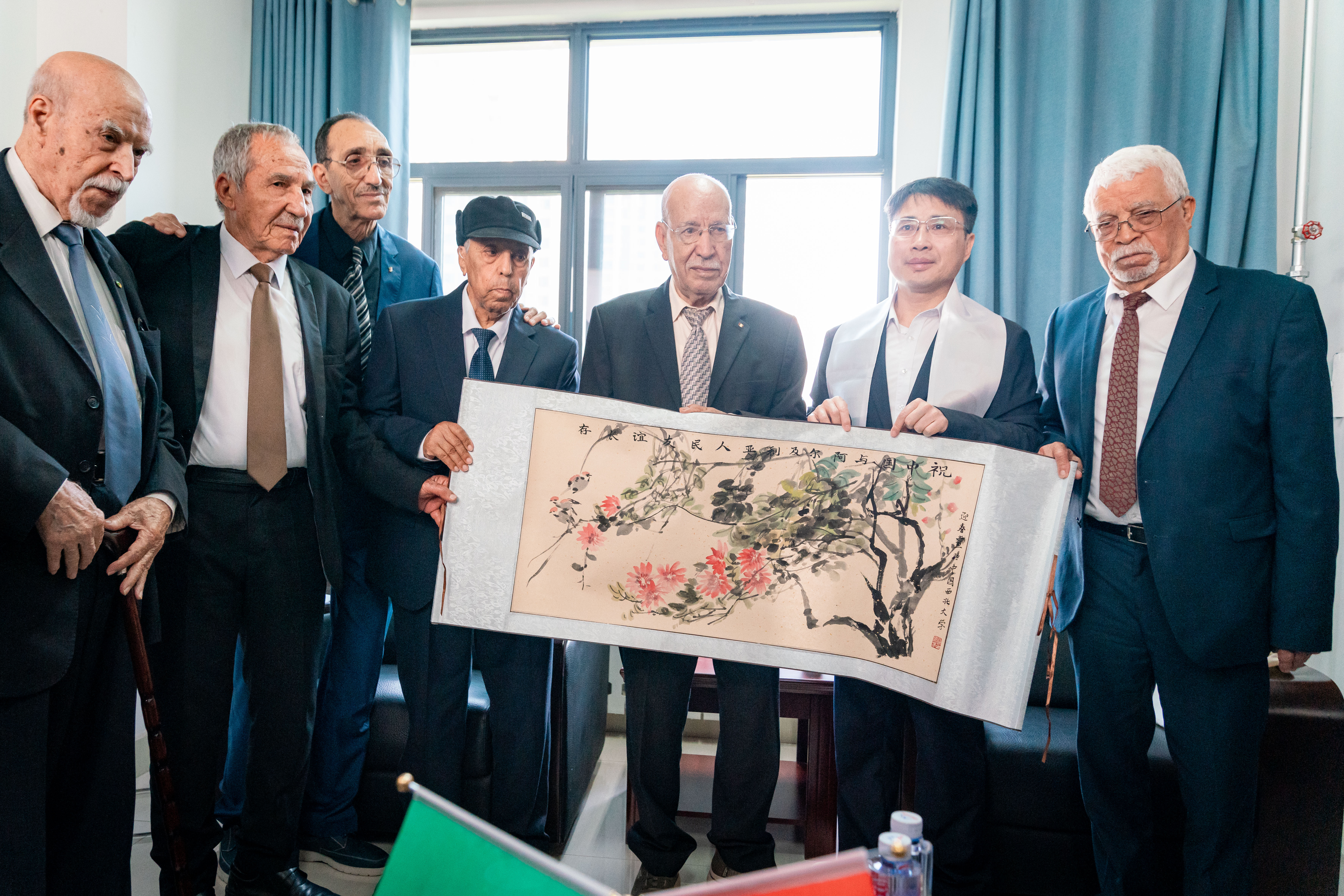 座谈会上,孙庆伟向来访的阿老战士代表团一行表示热烈欢迎。他介绍了学校发展特色以及与阿尔及利亚合作相关情况。他指出,中国和阿尔及利亚的关系源远流长,长期以来两国人民相知相守、互尊互助,结下了深厚情谊。他表示,学校历来高度重视与西亚、北非、中亚等国家和地区的交流合作。近年来,依托中非合作论坛、中阿合作论坛、中阿峰会、阿尔及利亚研究中心等平台,学校与阿尔及利亚相关高校和机构在多个领域达成一系列合作共识,产生了广泛影响。他希望,在各方共同努力下,进一步深化中阿革命交往研究,让两国年轻一代跨越时空、触摸历史,加强交流、携手前行,共同为构建更高水平中阿命运共同体贡献智慧与力量。