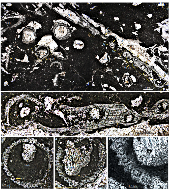 刘丽静介绍,“此次发现的化石样本,是来自塔里木盆地晚奥陶世早期(凯迪早期)以及尔多斯盆地晚奥陶世早期(凯迪中期)(450Ma)的海相碳酸盐岩地层中的海生的轮藻钙质叶状体化石。因为该化石奇迹般地保存了轮藻纲叶状体关键特征的正模标本来自塔里木盆地,于是我们团队把他骄傲地命名为奇迹塔里木轮藻Tarimochara miraclensis gen.etsp. nov.。”