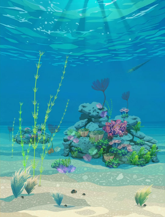 根据化石观察构建的奇迹塔里木轮藻生态景象插图(博物馆刘茜绘)