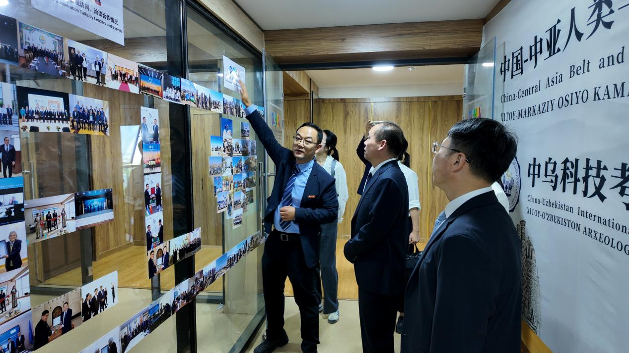 6月2日,陕西省科技厅二级巡视员杨世宏、四级调研员赵一君、科技交流中心国际合作部部长张思琪一行调研并视察中国-中亚人类与环境“一带一路”联合实验室撒马尔罕分中心建设情况。米兰买球校长孙庆伟陪同调研。国际合作部、联合实验室负责人,丝绸之路考古合作研究中心教师代表参加座谈会。