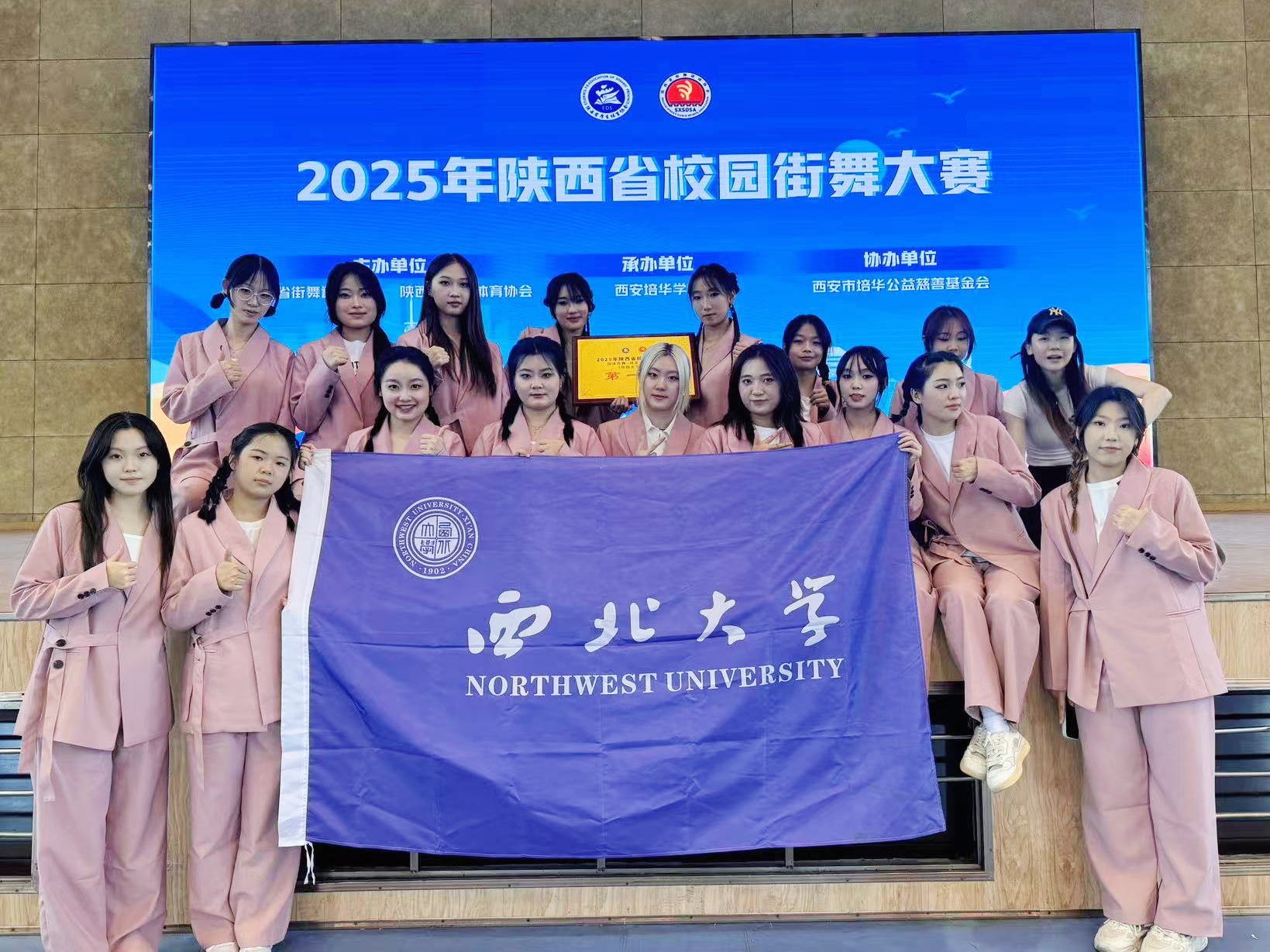 在2025年陕西省校园街舞大赛中,米兰买球啦啦操队报名参加了团体赛中的齐舞规定套路,并在最终的比赛中夺得第一名。