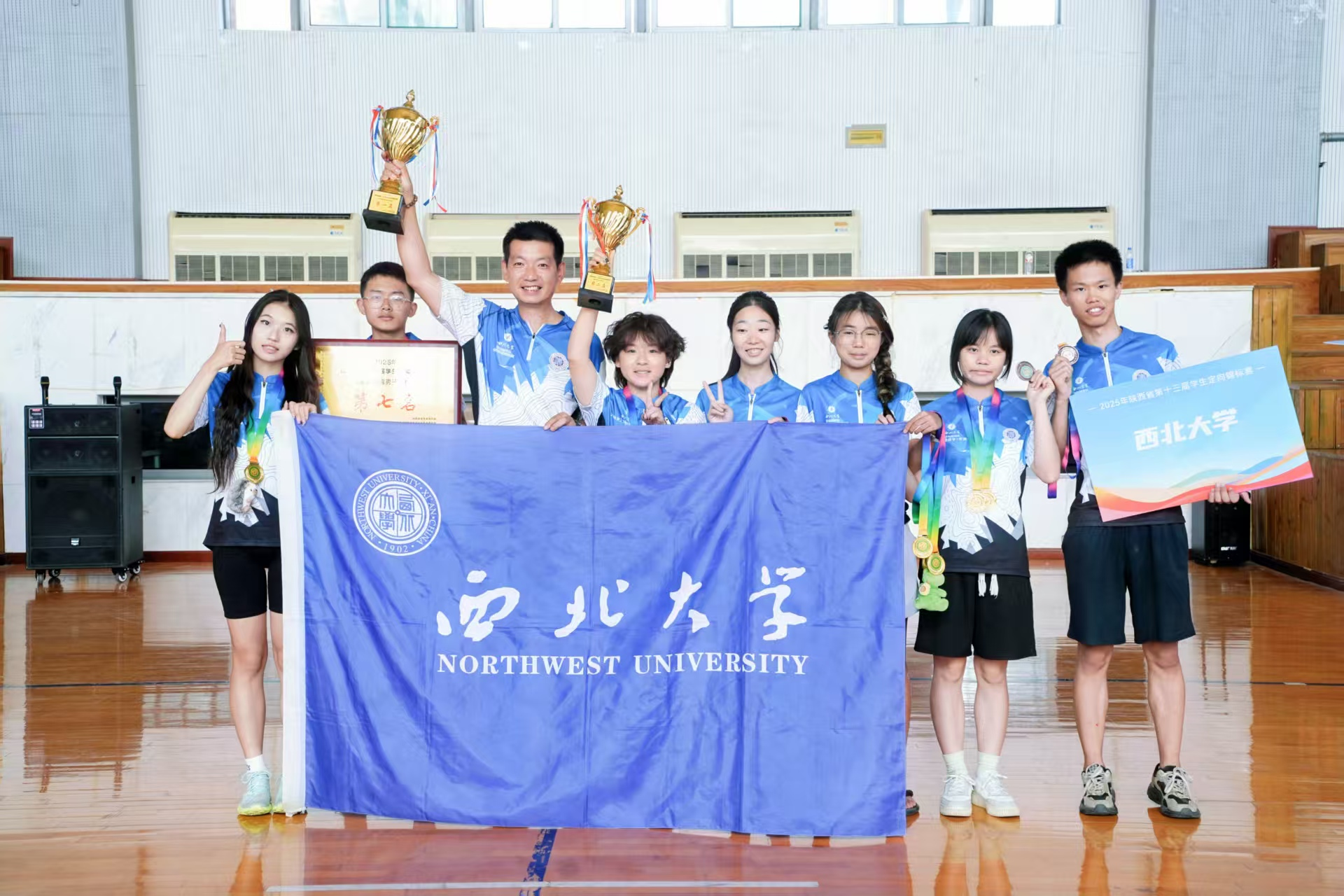 在2025年陕西省第13届学生定向锦标赛中,米兰买球定向越野队共派出5女2男参加本届赛事,最终获得4金2银2铜的好成绩,勇夺大学女子甲组团体第一名及大学甲组总团体第二名,展现了西大学子扎实的定向技战术水平和良好精神风貌。
