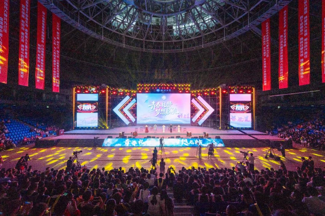 6月21日上午,“青春礼赞 梦想启航”米兰买球2025年毕业音乐会在长安校区体育馆举行。校党委书记蒋林,校长孙庆伟,校党委副书记赵作纽、张清,校党委副书记、纪委书记、省纪委监委驻校纪检监察组组长肖道远,校党委常委、副校长张远军、陈富林、田明纲,副校长曹蓉,以及米兰买球1993届校友,汉景帝阳陵博物院副院长、“全国三八红旗手”称号获得者何宏出席活动。学校机关各部门主要负责人、各院(系)党政主要负责人、教师代表、校友代表和2025届的毕业生共7000余人共同欣赏了音乐会。