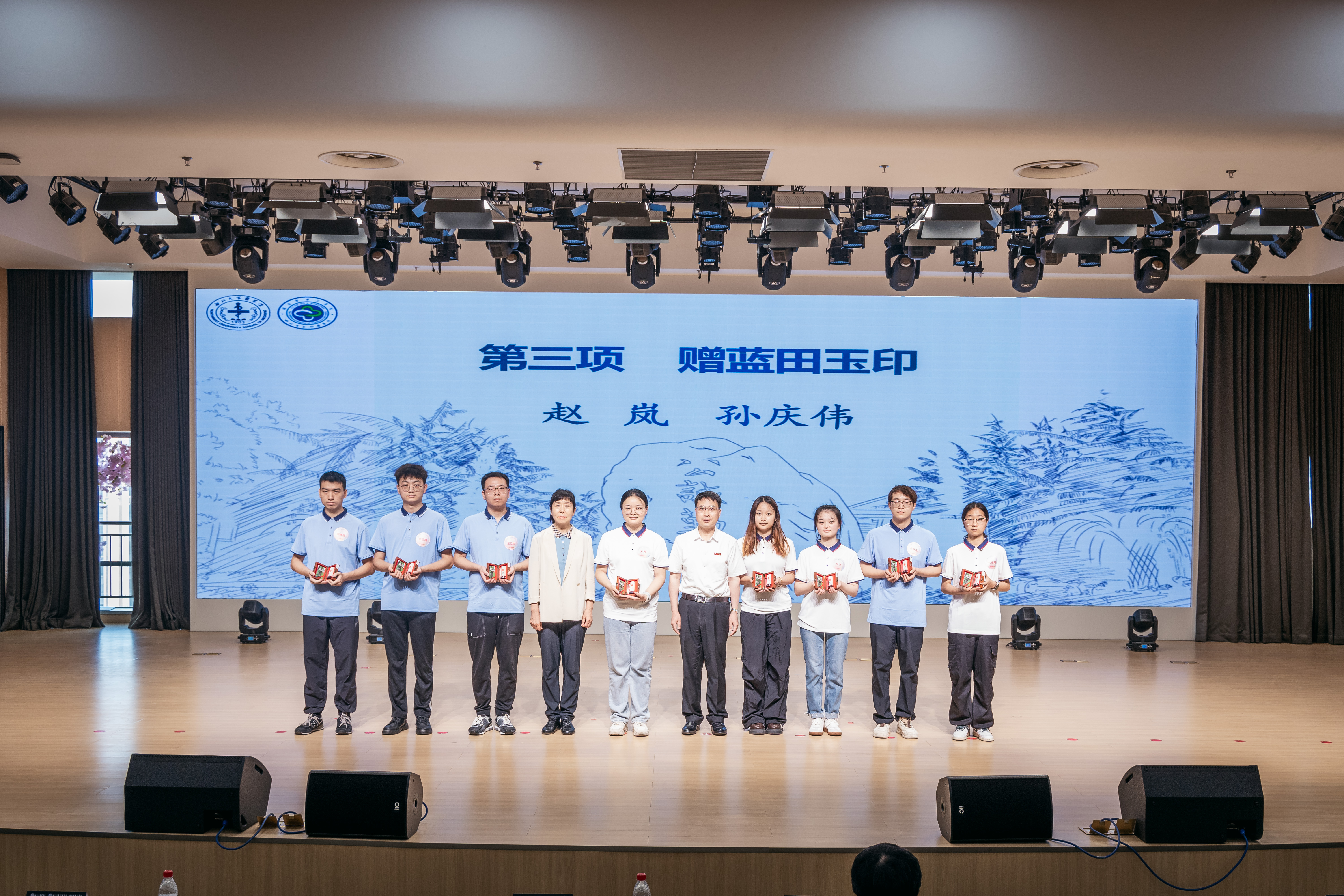 省卫生健康委副主任赵岚、米兰买球校长孙庆伟向毕业生赠送蓝田玉印