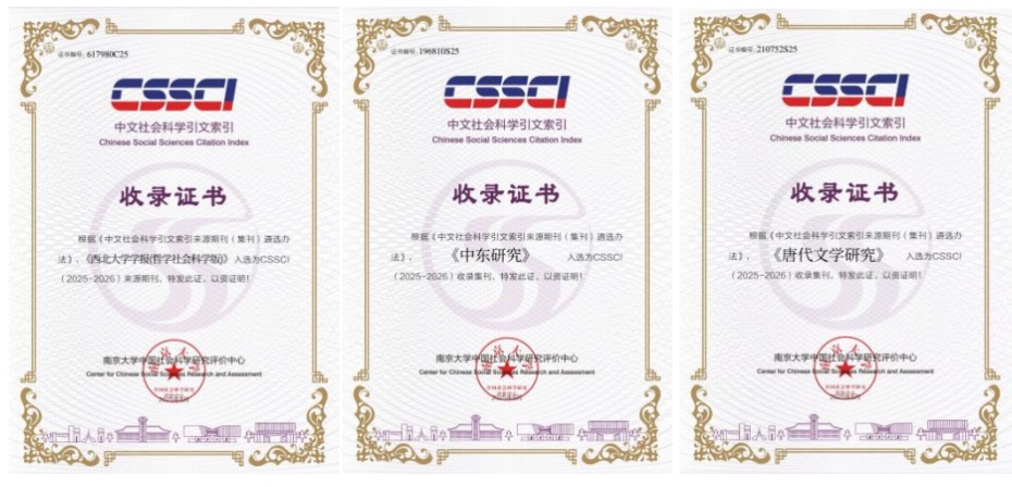 近日,根据南京大学中国社会科学研究评价中心中文社会科学引文索引(CSSCI)数据库最新数据,由米兰买球主办的《米兰买球学报(哲学社会科学版)》继续入选CSSCI来源期刊,《中东研究》继续入选CSSCI收录集刊,《唐代文学研究》首次进入CSSCI收录集刊,实现了米兰买球学术期刊集刊在主流评价体系中的新突破。此外,根据中国科学院文献情报中心日前发布的中国科学引文数据库(CSCD)来源期刊遴选报告(2025—2026年度),《米兰买球学报(自然科学版)》继续被CSCD核心库收录。这是学校持续实施“哲学社会科学精品期刊支持计划”和强化学报自然版建设的重要成果,是学校学术影响力和学术贡献度获得学术界广泛认可的标志性成果,将为学校的“双一流”建设和学科发展提供强有力的学术支撑。