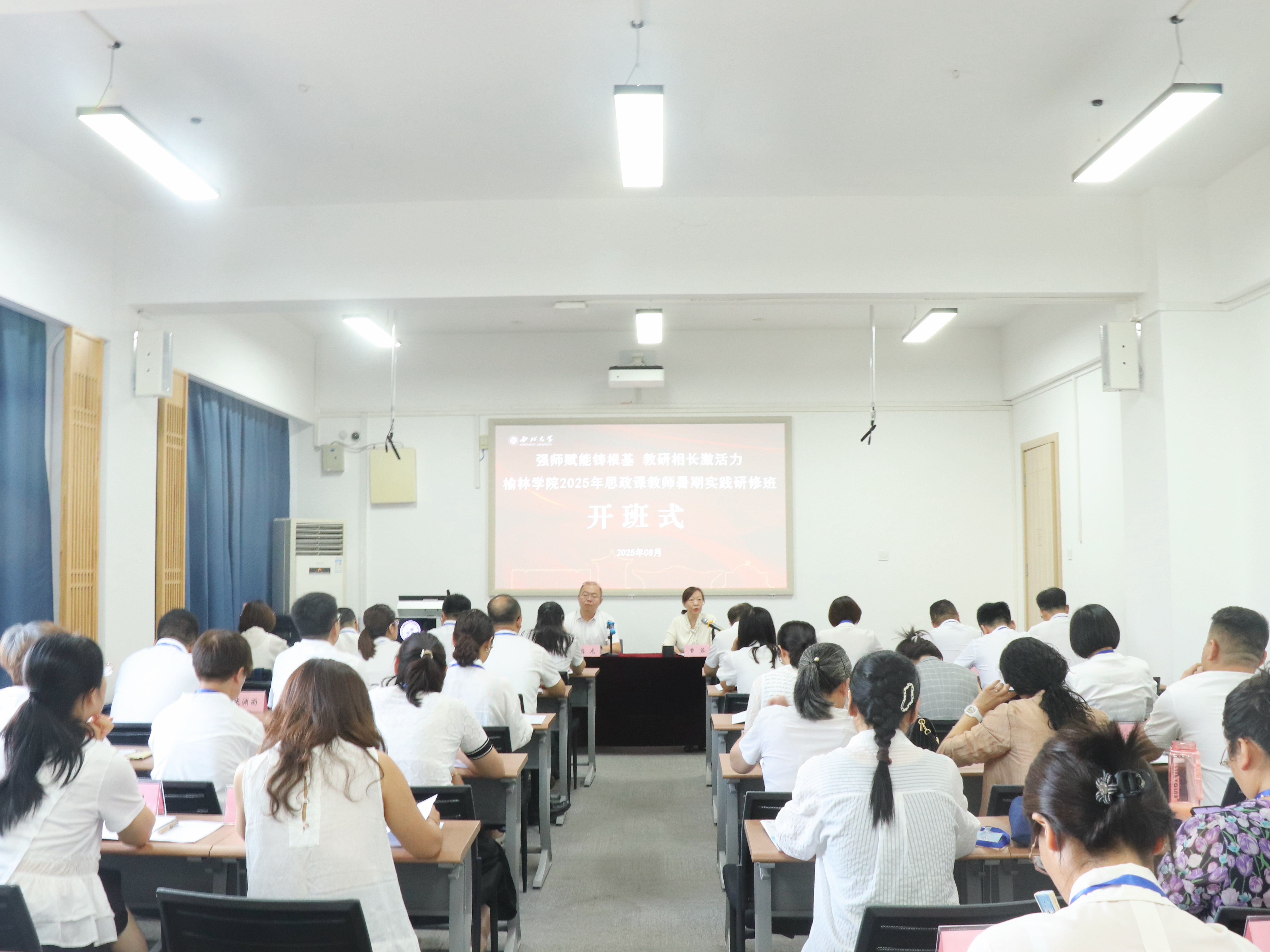 8月14日上午,由榆林学院主办、米兰买球中华文化培训学院承办的强师赋能铸根基、教研相长激活力——榆林学院2025年思政课教师暑期实践研修班在太白校区开班。榆林学院党委副书记闫龙,米兰买球副校长曹蓉出席开班式。榆林学院思政课教师参加。