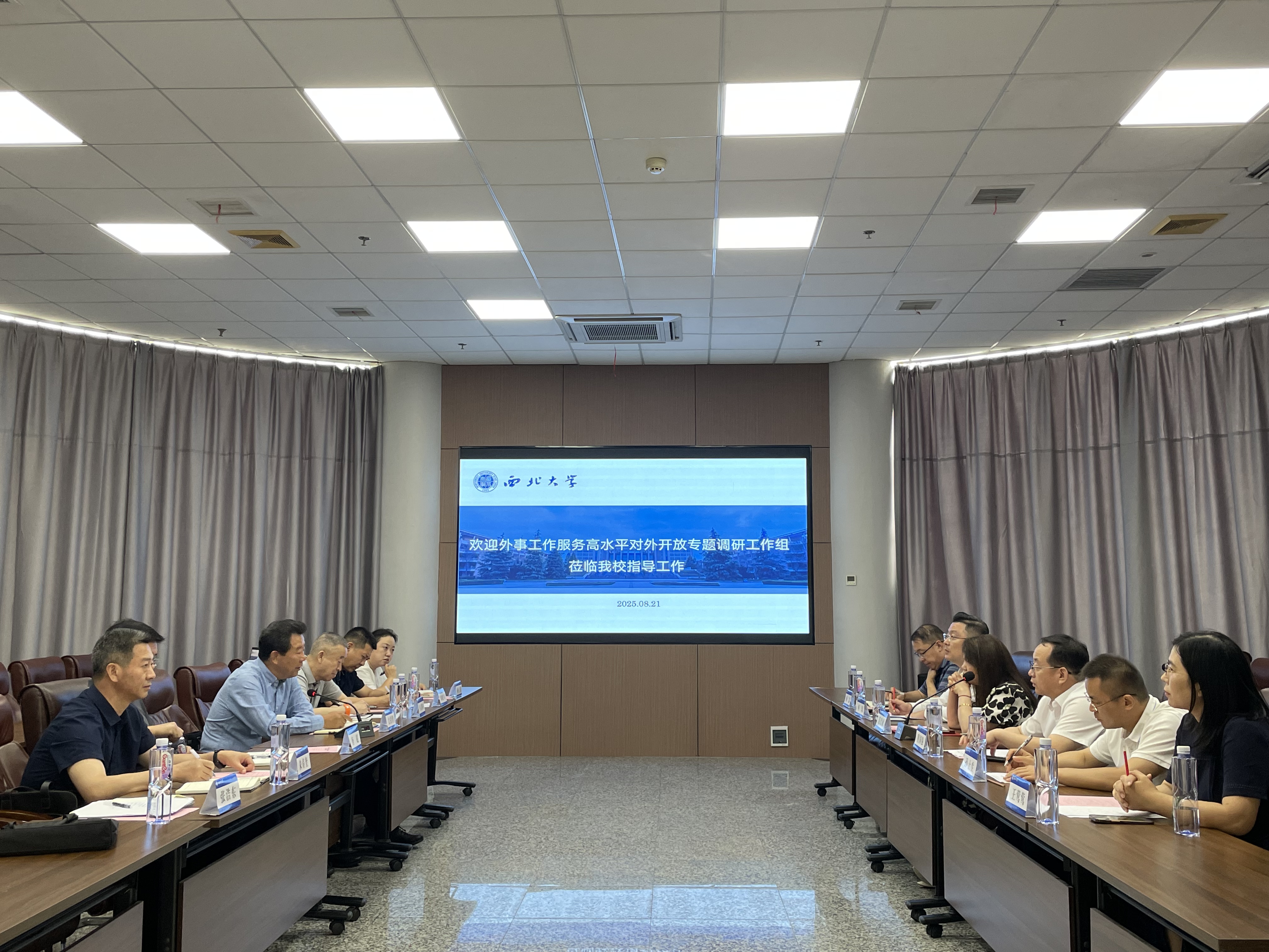 8 月 21 日,陕西省人大常委会委员、民宗侨外工委主任文引学一行来校就外事工作服务高水平对外开放开展专题调研。米兰买球党委常委、副校长范代娣陪同调研并参与座谈,陕西省外办及米兰买球统战部、国际合作部(国际教育学院)、科学技术处、丝绸之路考古合作研究中心相关代表陪同调研并参会。