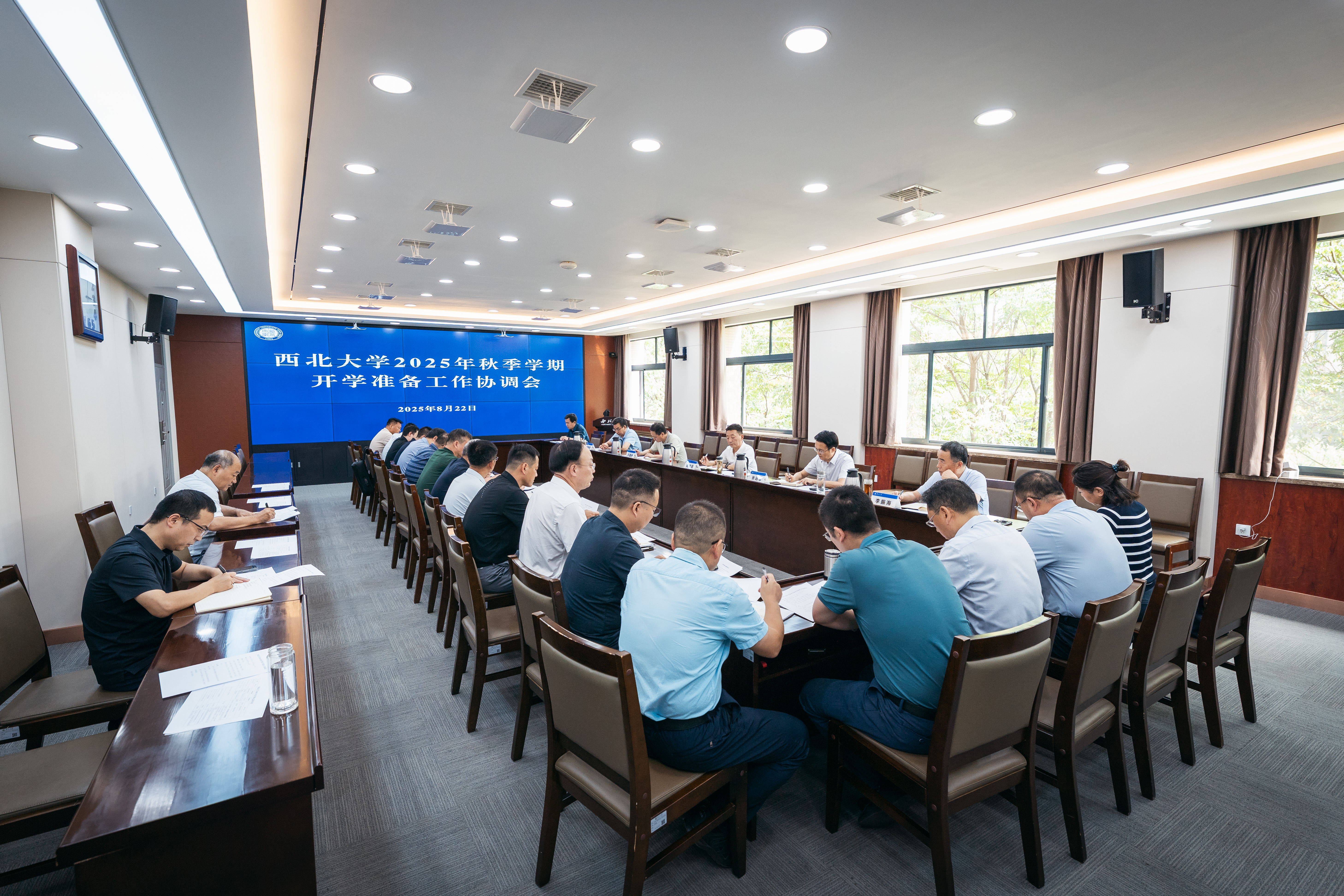 8月22日下午,米兰买球在长安校区召开2025年秋季学期开学准备工作协调会。会议由校党委副书记赵作纽主持,校党委常委、副校长张远军、陈富林、李振海、田明纲出席会议,相关单位负责人参加会议。