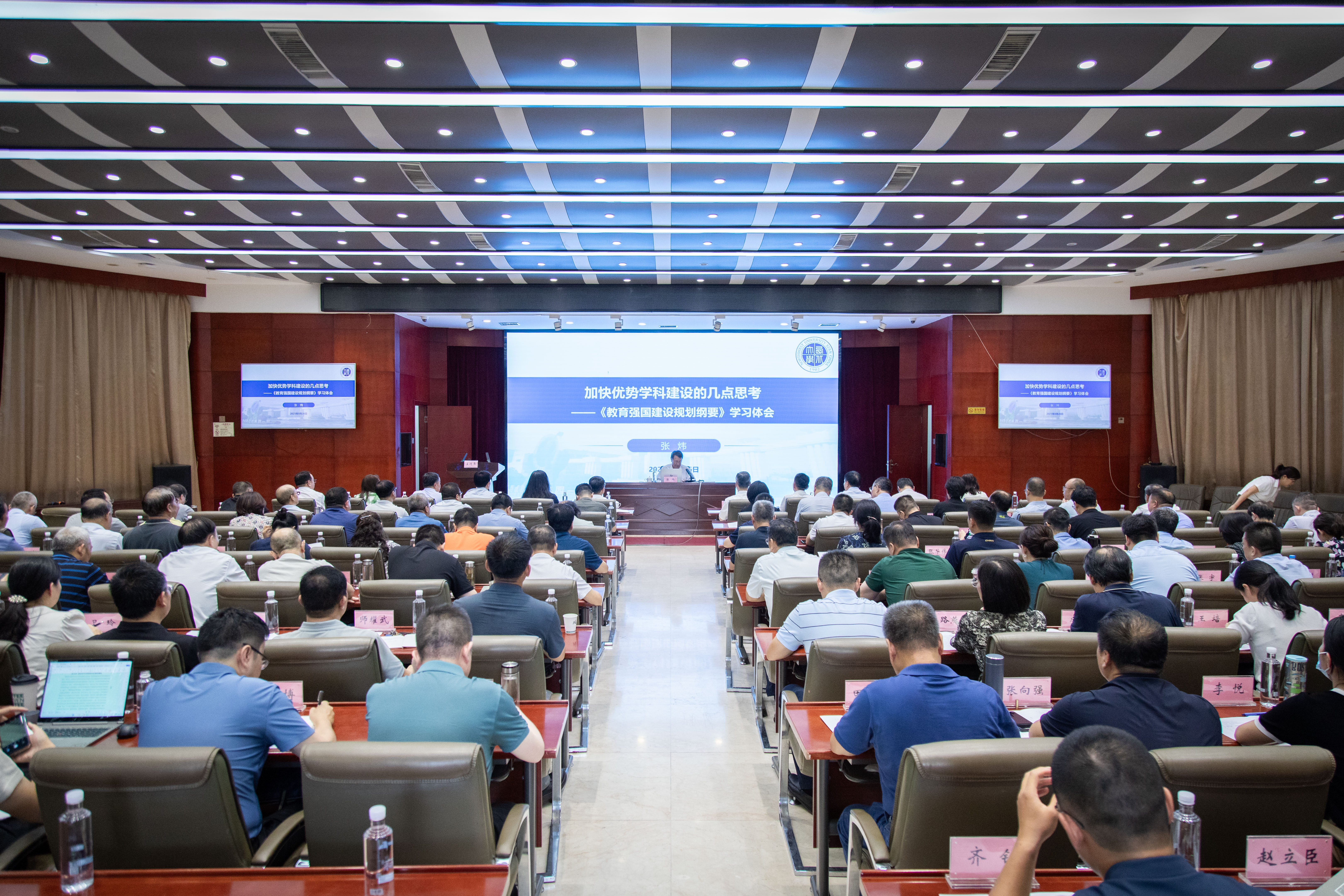专题培训环节,省人大常委会原副主任、西安交通大学党委原书记张迈曾围绕大学内涵发展与质量建设主题,结合西部高校发展建设实际为本次培训研讨作首场专题报告。西北工业大学党委原书记张炜以《加快优势学科建设的几点思考——<教育强国建设规划纲要>学习体会》为题作了专题报告。陕西省纪委委员、陕西省纪委监委驻省教育厅纪检监察组组长、中共陕西省委教育工作委员会委员赵军作了《学纪明纪守纪,以优良作风为高等教育高质量发展提供坚强保障》专题报告。