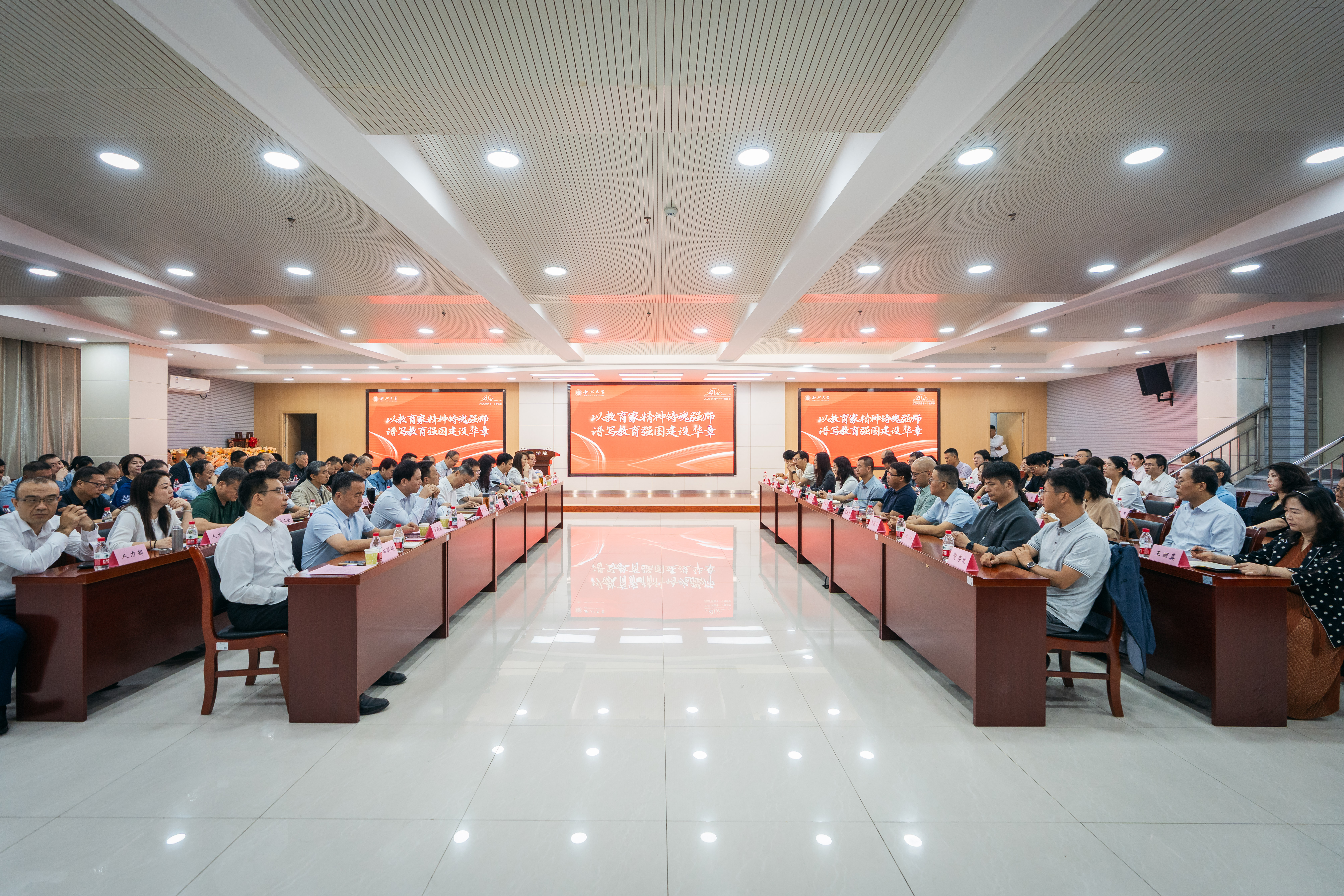 孙庆伟在主持会议时带领全体与会人员一起重温侯伯宇教授的感人事迹。他指出,侯伯宇教授学为人师、行为世范,用一生言行诠释的师者大义,值得每位教师学习和敬仰。他倡议全校上下再次掀起学习侯伯宇精神的新热潮,以此振奋精神、凝聚力量,为推动教育事业发展作出更大贡献。他强调,在高等教育深刻变革、挑战与机遇并存的大背景下,广大教师要坚守育人初心,弘扬“公诚勤朴”校训和“艰苦创业、自强不息”的西大精神,既做学问之师,更做品行之师,努力成为学生理想、信念与价值的奠基者与引路人。各部门和各院系要进一步优化资源配置,强化协同合作,真正让勇于创新、乐于奉献、善于育人的教师拥有更宽广的舞台、更充分的保障和更可持续的发展。通过全校上下的持续努力,共同推动学校在强国建设新征程中再创佳绩、再立新功。(图/ 马骞)