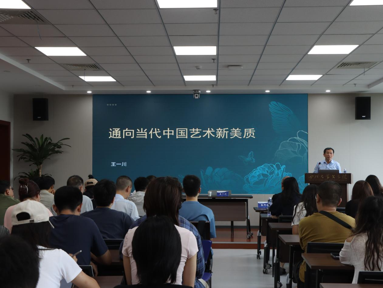 首先,王一川教授介绍自身“在理论中做批评,在批评中做理论”的研究理念。他回溯了中国艺术美质演变历程:古典艺术重“感兴”,指向艺术家主体身心的感情升腾状态。随着历史语境的演变,“感兴”更生为“流兴”“典型”“流兴化典型”“典型化流兴”等多种新形态。其次,他强调“流溯”这种新美质的社会功能。相较于“流兴”侧重过往、“典型”聚焦当下的特点,“流溯”将“面向未来”与“回溯过去”这两个看似对立的维度深度融合,最终生成“在回溯中迈向未来”的新型美质。“流溯”揭示了当代中国艺术在向前流动中又向后溯洄,携带传统而开创新生的特质。最后,王一川教授结合中国古代建筑、经典舞剧等艺术门类,以跨学科形式展开讲解,语言生动、深入浅出,令在场师生受益匪浅。