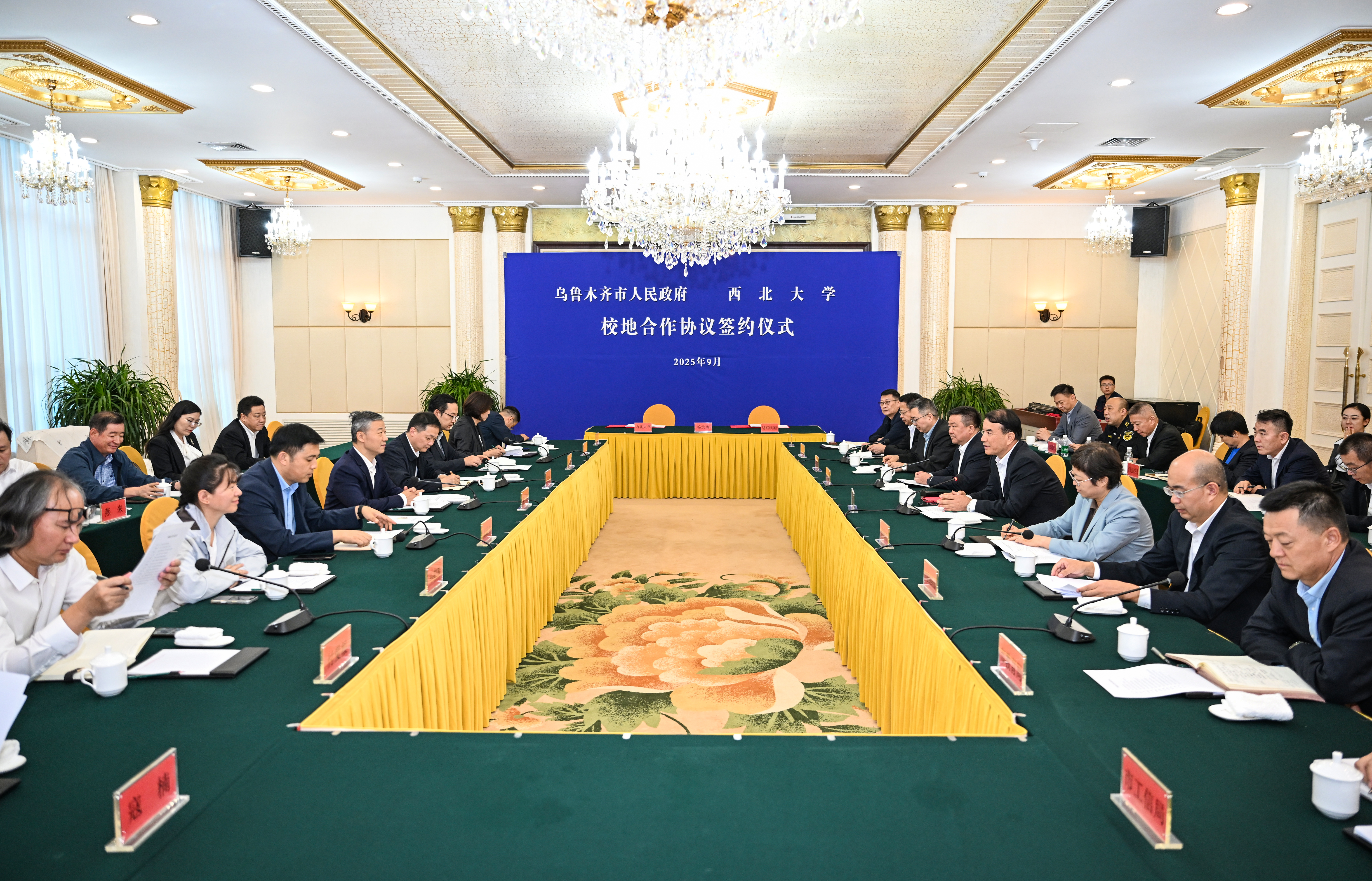 蒋林介绍了学校的整体情况。他表示,学校与乌鲁木齐市人民政府签订校地全面合作协议,是完整准确贯彻新时代党的治疆方略,推动双方事业高质量发展的重要举措,学校将以此次签约为契机,与乌鲁木齐紧密携手,开展全方位、深层次、高水平的校地合作,特别是在人才培养与交流、文化润疆工程、打造“产学研用”协同创新共同体、提供高水平智库支持等方面重点发力,持续为乌鲁木齐社会经济发展贡献西大力量。他指出,本次校地合作协议的签署,标志着双方合作开启了新的篇章,学校将与乌鲁木齐市相关部门密切沟通、高效对接,推动协议各项内容有序推进、落地生根,取得丰硕成果,实现互利共赢、共同发展。