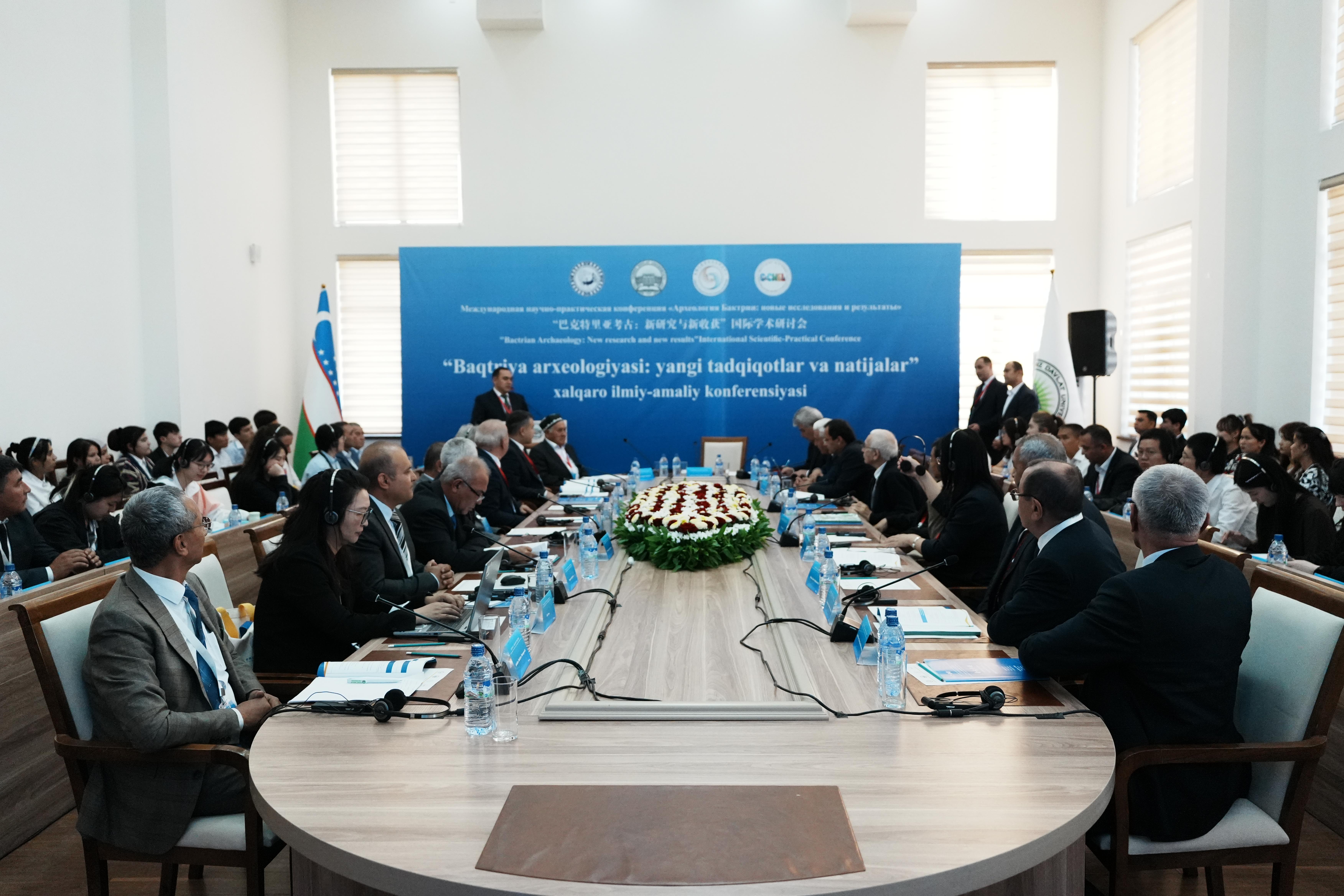 会议开幕式由铁尔梅兹国立大学副校长阿利舍尔·沙布杜拉耶夫主持。乌兹别克斯坦教育部原部长、铁尔梅兹国立大学校长托什库洛夫·阿卜杜卡迪尔·哈米多维奇,文化部原部长、文化遗产署第一副署长库兹耶夫·图尔苏纳利·卡里姆佐诺维奇和撒马尔罕考古研究所所长赛义多夫·穆明汉,米兰买球校长孙庆伟(线上)先后致辞。