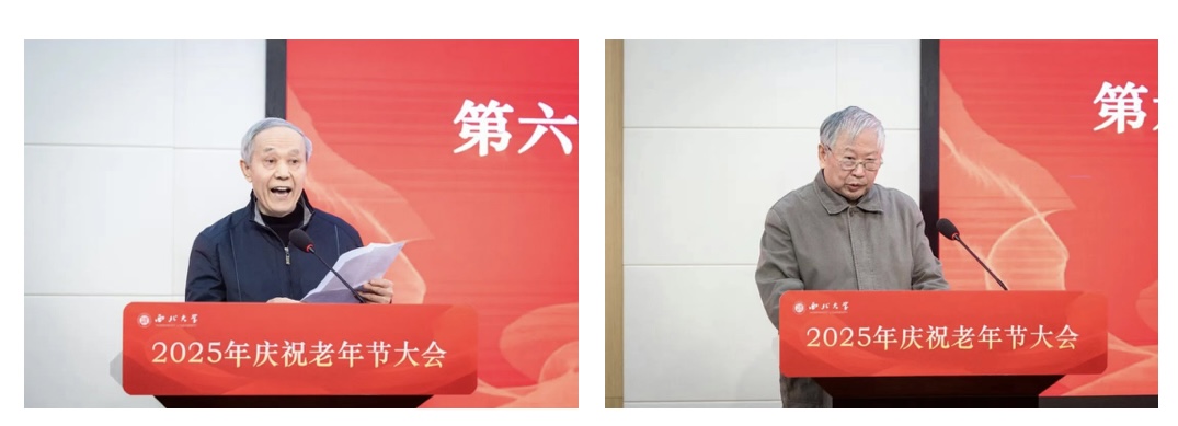薛来前、唐宗薰先后代表老同志发言,他们深情回顾了在学校学习工作和生活的岁月,畅谈晚年生活感悟,对学校长期以来的关怀表达由衷感谢,并表达了对学校的深厚情感和对未来的美好期许。