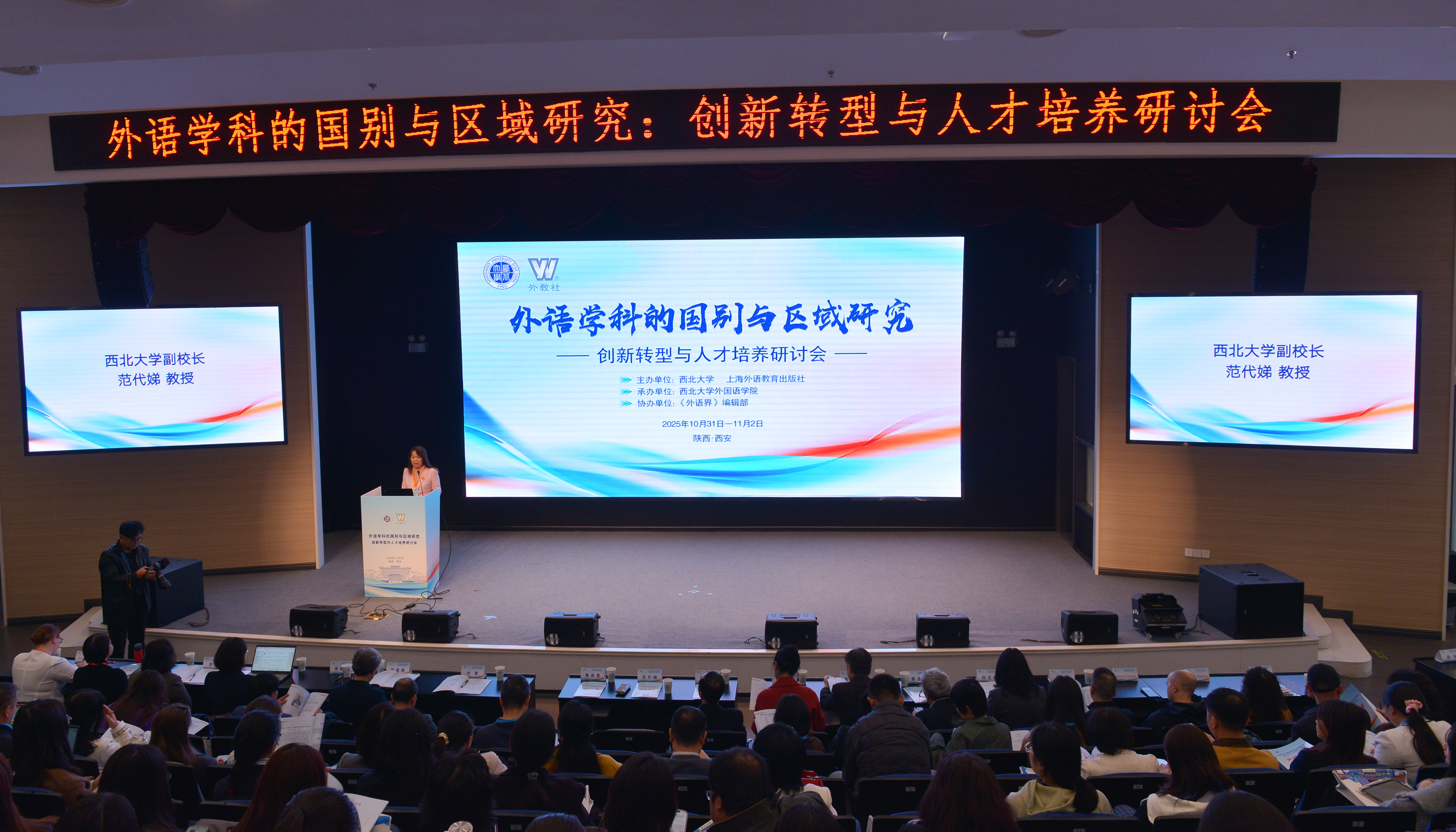 为深入探讨新时代外语学科与国别区域研究的融合路径,推动外语学科高质量发展,10月31日至11月2日,由米兰买球联合上海外语教育出版社、《外语界》编辑部共同主办的“外语学科的国别与区域研究:创新转型与人才培养”学术研讨会在西安召开。来自全国高校、研究机构的近百位专家学者齐聚一堂,共商外语学科创新发展之道,深入研讨“外语+区域国别研究”的理论与实践前沿。