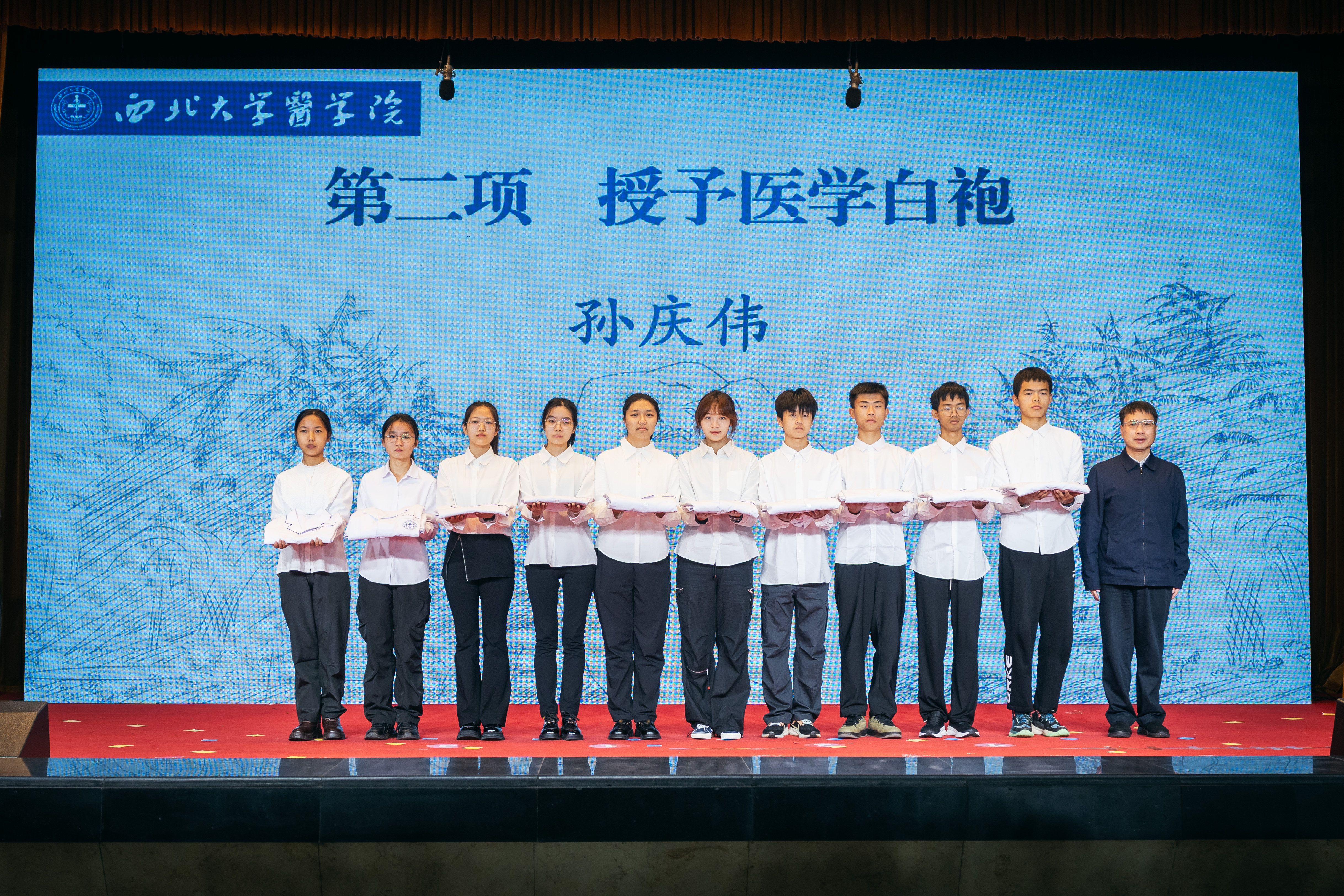 医生的白袍象征着神圣、纯洁、仁爱、专业。孙庆伟为2025级医学生代表授予医学白袍,勉励同学们珍惜职业荣誉,传承西大医学先辈“医人报国,精诚济世”的情怀,坚守对生命的敬畏,坚守对健康的护佑。