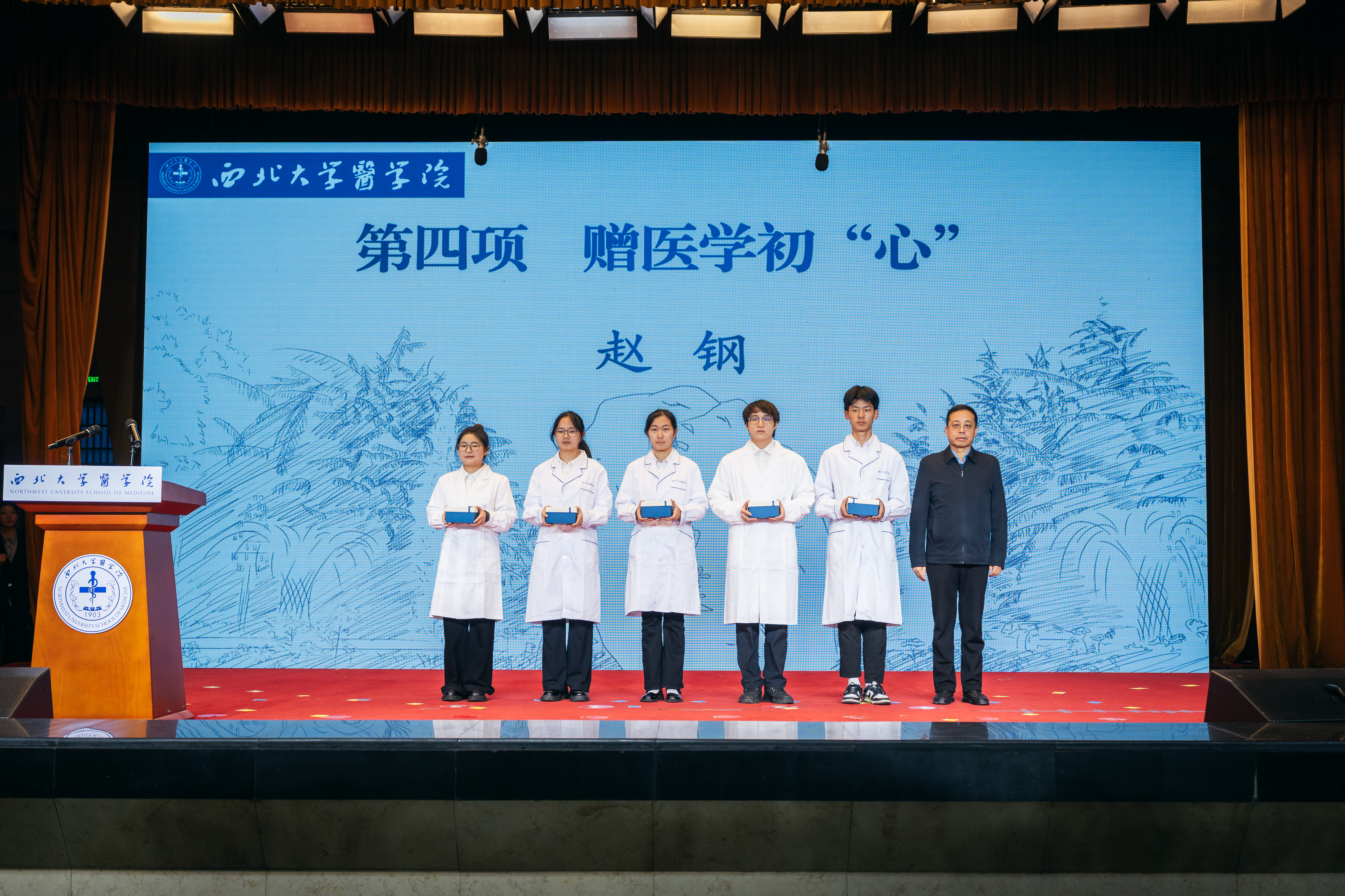 同学们身着白袍,庄严宣誓,完成了医学生的身份转变。仪式上,赵钢为学生代表赠送医学初“心”,激励同学们铭记初心。陈富林为2025级临床医学班主任吕雅丽、杜昊骐,口腔医学班主任侯晓冲,生物医学科学班主任舒健颁发聘书。吕雅丽表示,她将从陪伴同学们健康成长、指导同学们增长技能、帮助做好职业规划等方面做好班主任工作。本科生代表薛钧阳、硕士研究生代表宁愿、博士研究生代表程湘淑分别发言,表示要保持对医学事业的热爱,克服“卷”的压力,保持“静”的定力,刻苦学习,践行誓言,做西大医学的践行者和传承者。