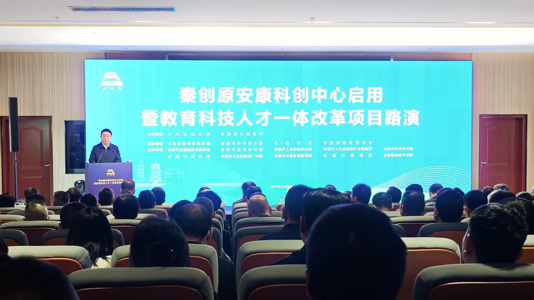 11月18日,校党委常委、副校长张志飞一行赴安康市,参加“秦创原安康科创中心启用暨教育科技人才一体改革项目路演活动”。本次活动由陕西省科学技术厅、中共安康市委、安康市人民政府共同主办,中国科学院院士王中林、房喻,陕西省委科技工委副书记兰壮丽,安康市委副书记、代市长张小平,安康市委常委、组织部长韩晓晖,安康市政府副市长周孝斌等出席会议,安康市委、市政府相关部门负责人、部分高校及企业代表200余人参加了会议,会议由安康市委副书记高晶华主持。