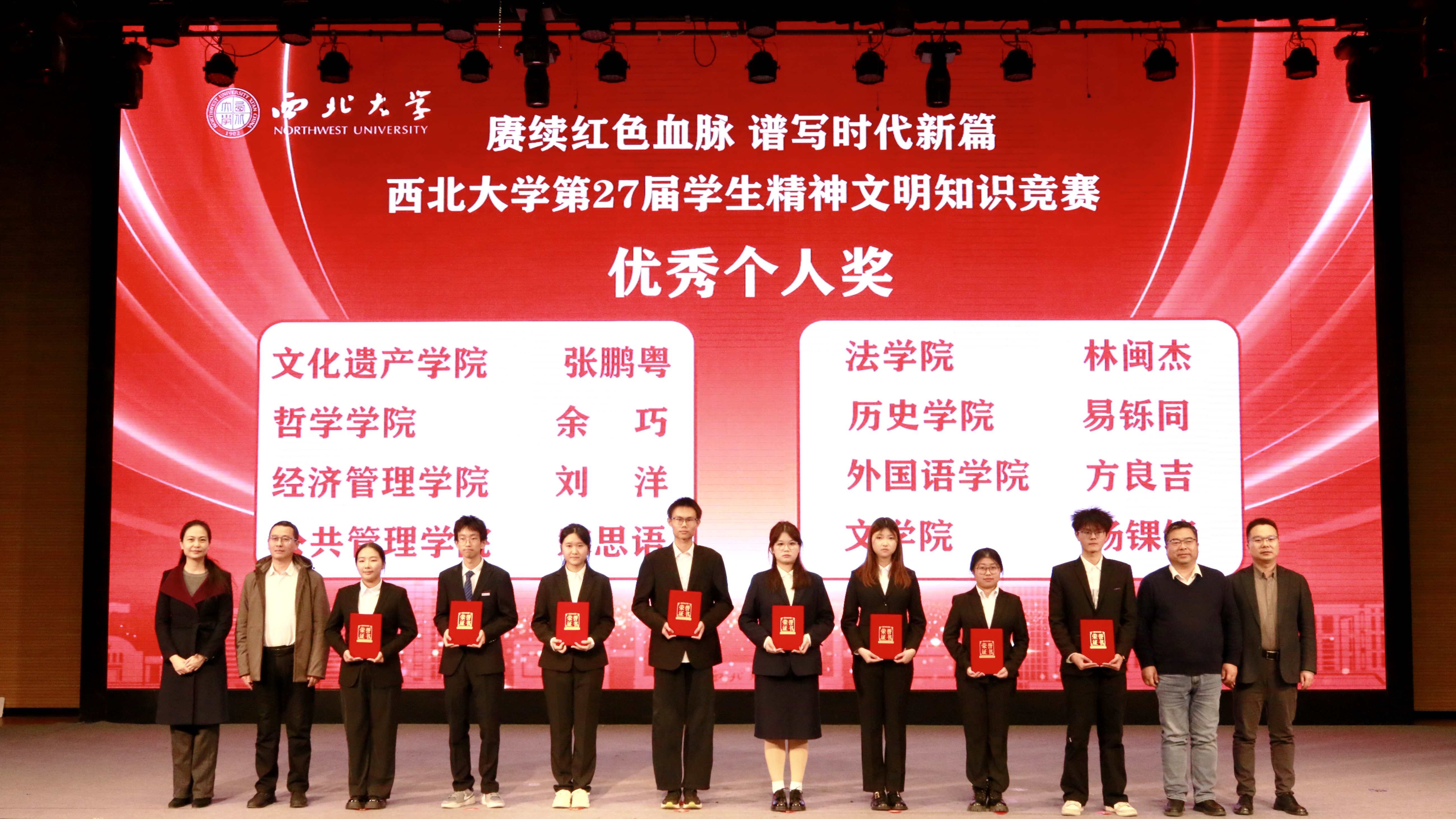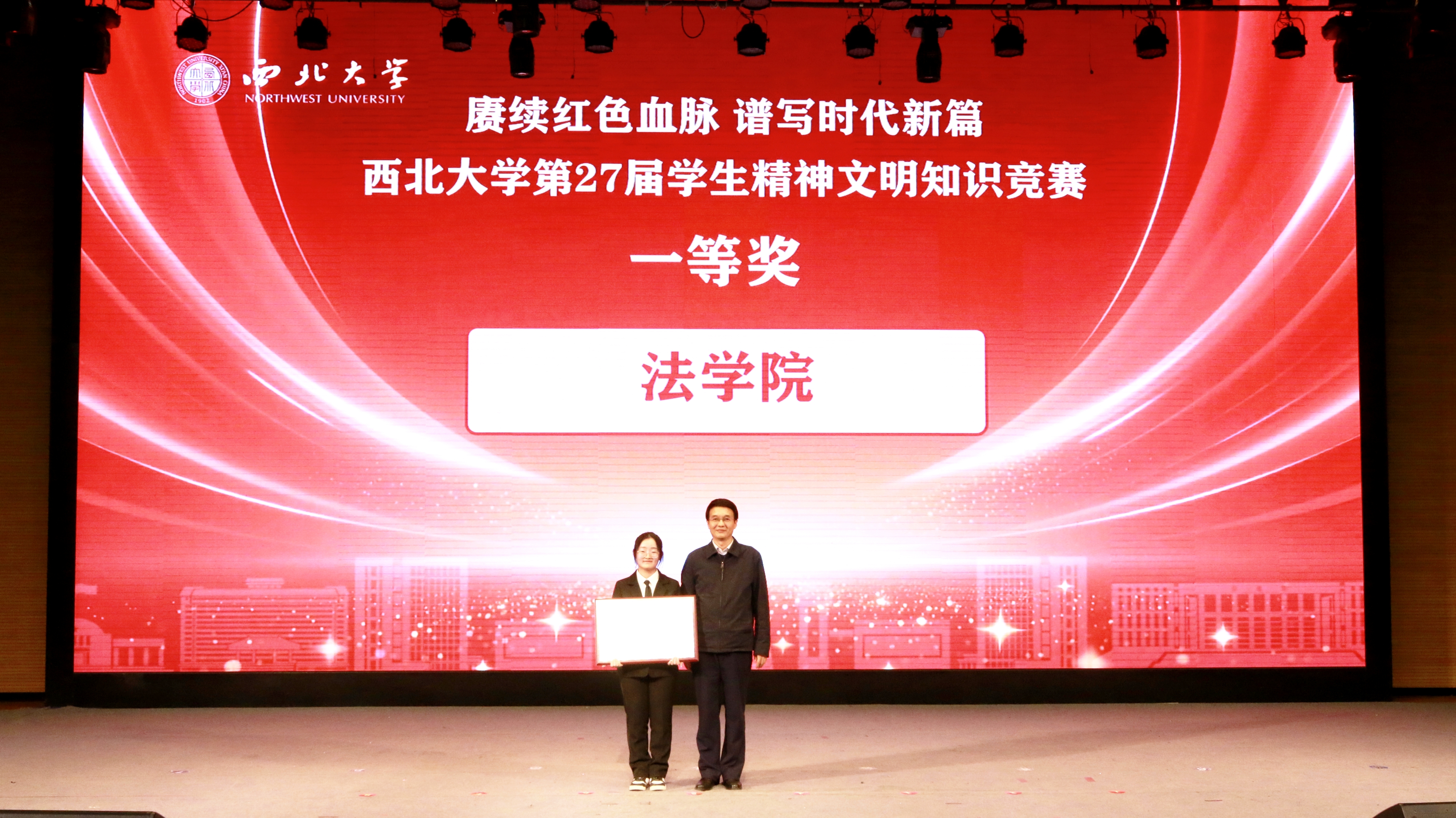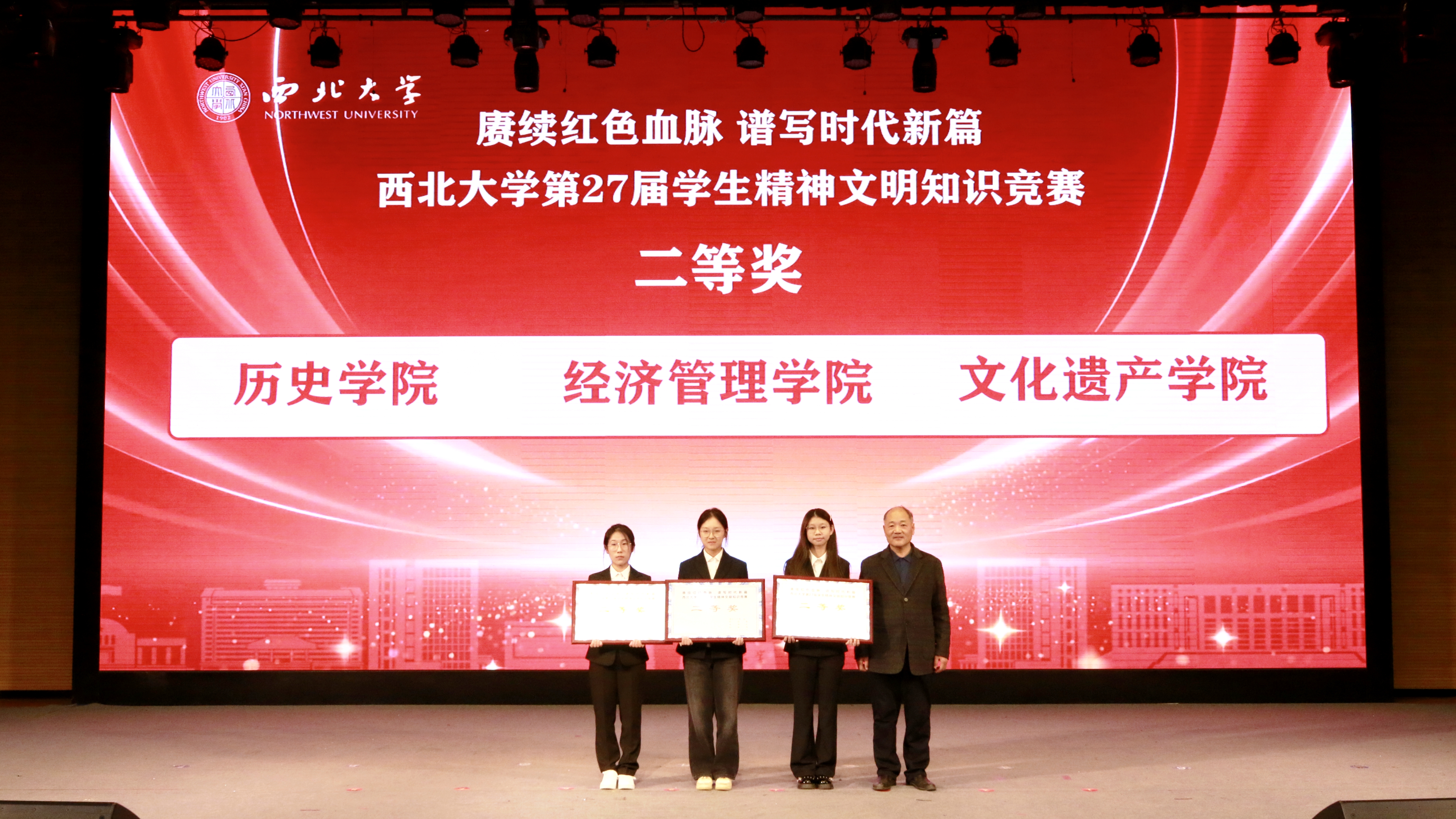 11月26日,米兰买球第27届学生精神文明知识竞赛决赛在长安校区圆满落幕,活动以“赓续红色血脉 谱写时代新篇”为主题。校党委副书记张远军、校学生工作领导小组成员单位负责人、各院(系)学生工作负责人、辅导员及500余名学生代表现场观看了比赛。活动由学生工作部、校团委、教务处和档案馆联合主办。