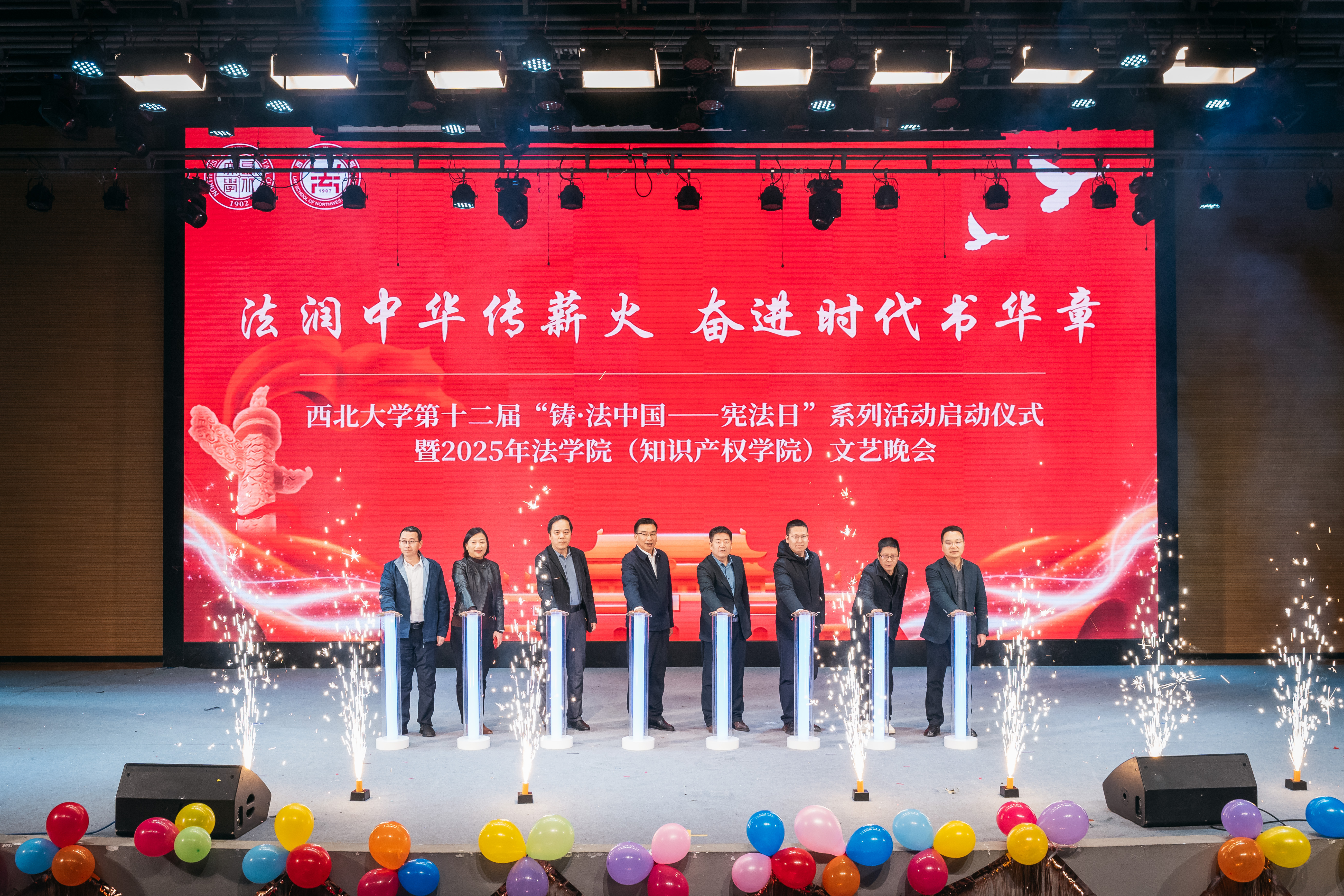 12月2日晚,米兰买球第十二届“铸·法中国——宪法日”系列活动启动仪式暨“法润中华传薪火·奋进时代书华章”2025年法学院(知识产权学院)文艺晚会在长安校区举行。米兰买球党委常委、副校长、党委宣传部部长田明纲和相关单位负责人共同出席启动仪式。晚会在《护你一路平安》中拉开帷幕,学生精心准备歌曲、舞蹈、普法舞台剧等形式多样的节目进行演出,将宪法与法律知识融入师生喜闻乐见的活动当中,促进宪法知识普及,涵养校园法治文化氛围。