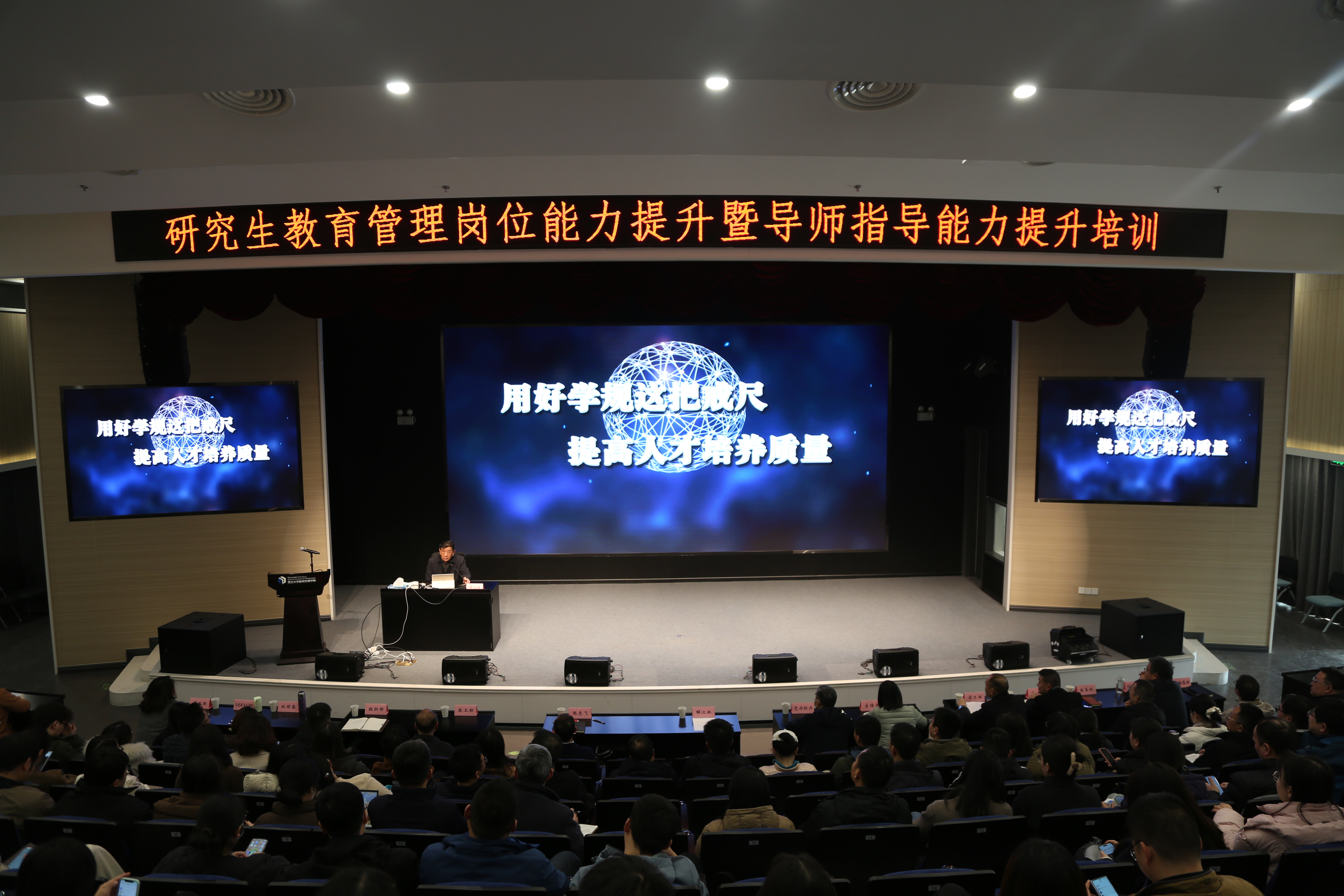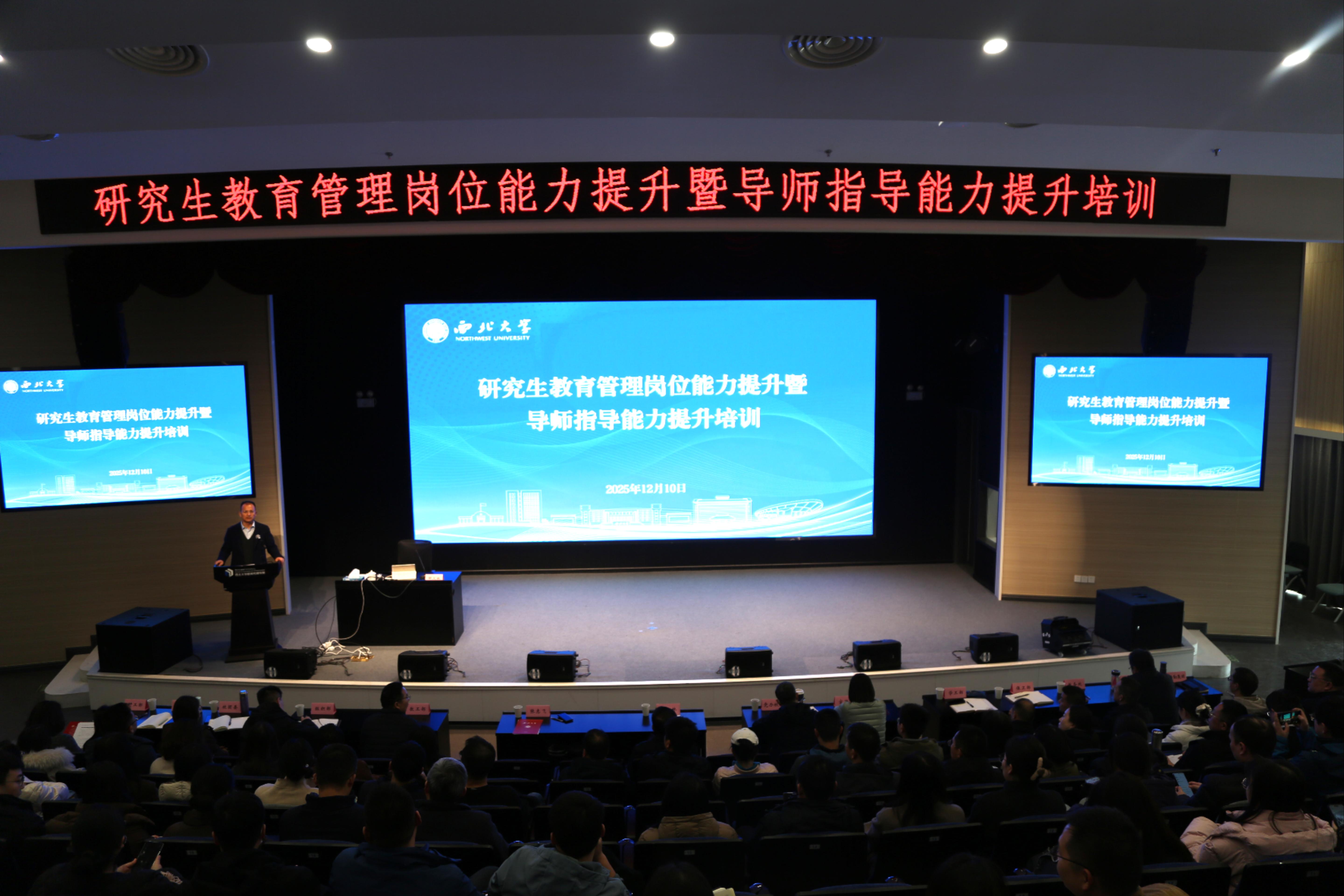 12月10日,研究生教育管理岗位能力提升暨导师指导能力培训活动在长安校区举行。原教育部高校学生司学籍学历管理处处长、二级巡视员、中国高等教育学会高校学生管理与就业创业工作研究分会副理事长解汉林受邀担任主讲人。校党委常委、副校长张志飞,校学生工作领导小组成员单位负责人,各培养单位研究生教育工作负责人、学生工作负责人、研究生辅导员、研究生秘书及研究生导师代表等参加培训,培训由研工部部长李伟主持。