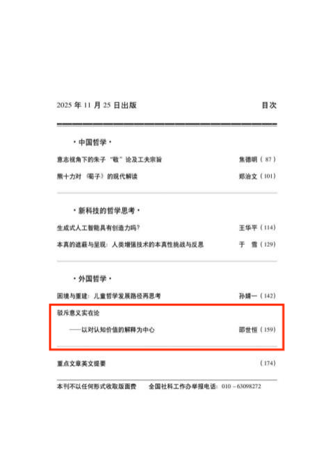 米兰买球哲学学院邵世恒副教授在顶级期刊《哲学研究》2025年第11期发表以《驳斥实在意义论——以对认知价值的解释为中心》为题的论文。
