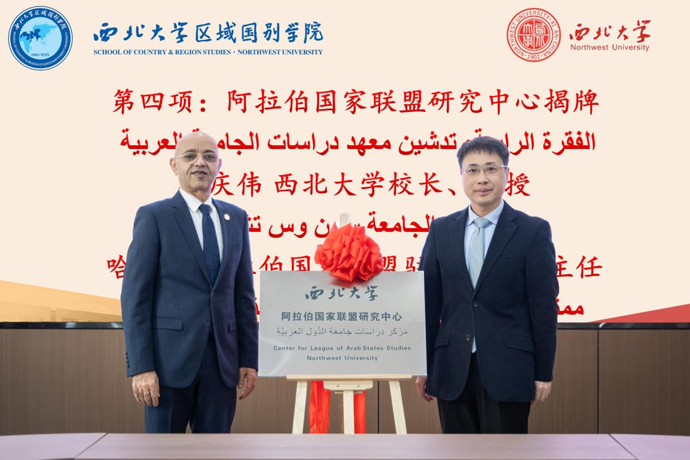 12月16日上午,阿拉伯国家联盟驻华代表处来校交流座谈。米兰买球校长孙庆伟出席座谈会,并与来访的阿拉伯国家联盟驻华代表处主任艾哈迈德·穆斯塔法·法赫米·哈菲兹(Ahmed Mustafa Fahmy Hafez)共同为米兰买球阿拉伯国家联盟研究中心揭牌。校党委常委、副校长范代娣主持座谈会,国际合作部、区域国别学院、外国语学院负责人及师生代表参加座谈。