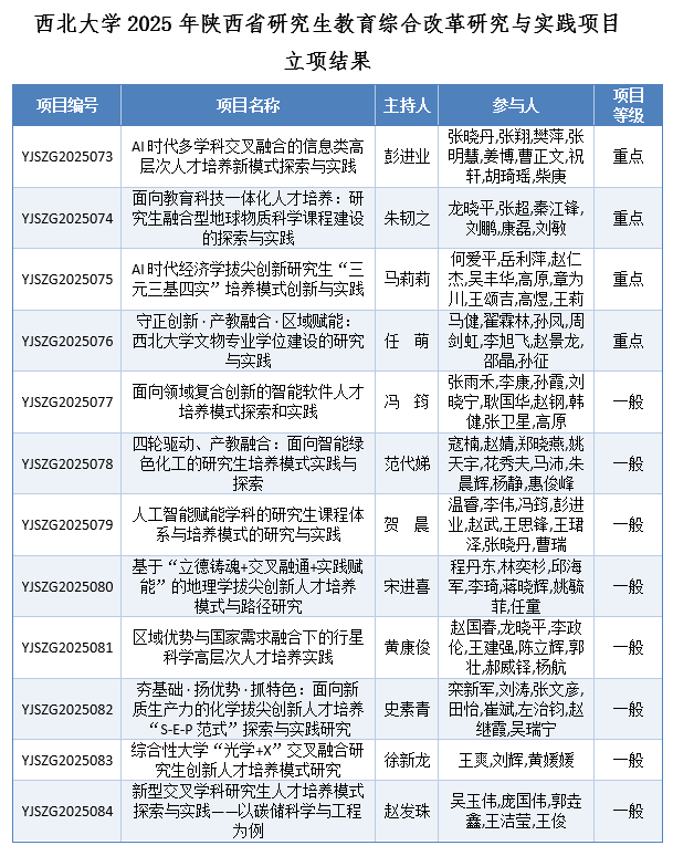 近日,陕西省教育厅与陕西省学位委员会联合发布《关于公布2025年陕西省研究生教育综合改革研究与实践项目立项结果的通知》,米兰买球共有12个项目获批。其中,重点项目4项、一般项目8项,获批项目总数位居全省高校第3位,立项总数创历史新高。