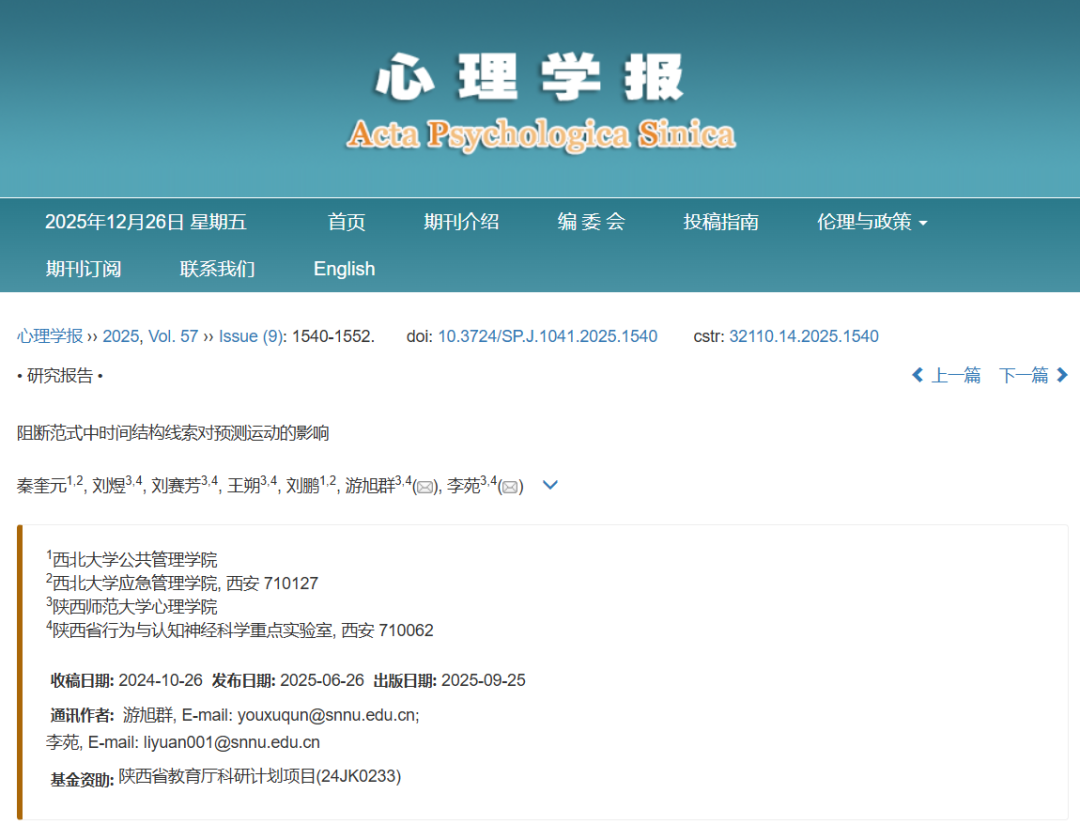 近日,米兰买球公共管理学院青年教师秦奎元博士联合陕西师范大学心理学院游旭群团队在《心理学报》上发表了一篇题为《阻断范式中时间结构线索对预测运动的影响》的研究成果。该研究首次在阻断范式下系统探究了时间结构对预测运动任务的影响,证实了时间结构一致能够显著提升个体在运动预测任务中的准确性和敏感性,并揭示了这一效应在视觉通道内的稳定性。
