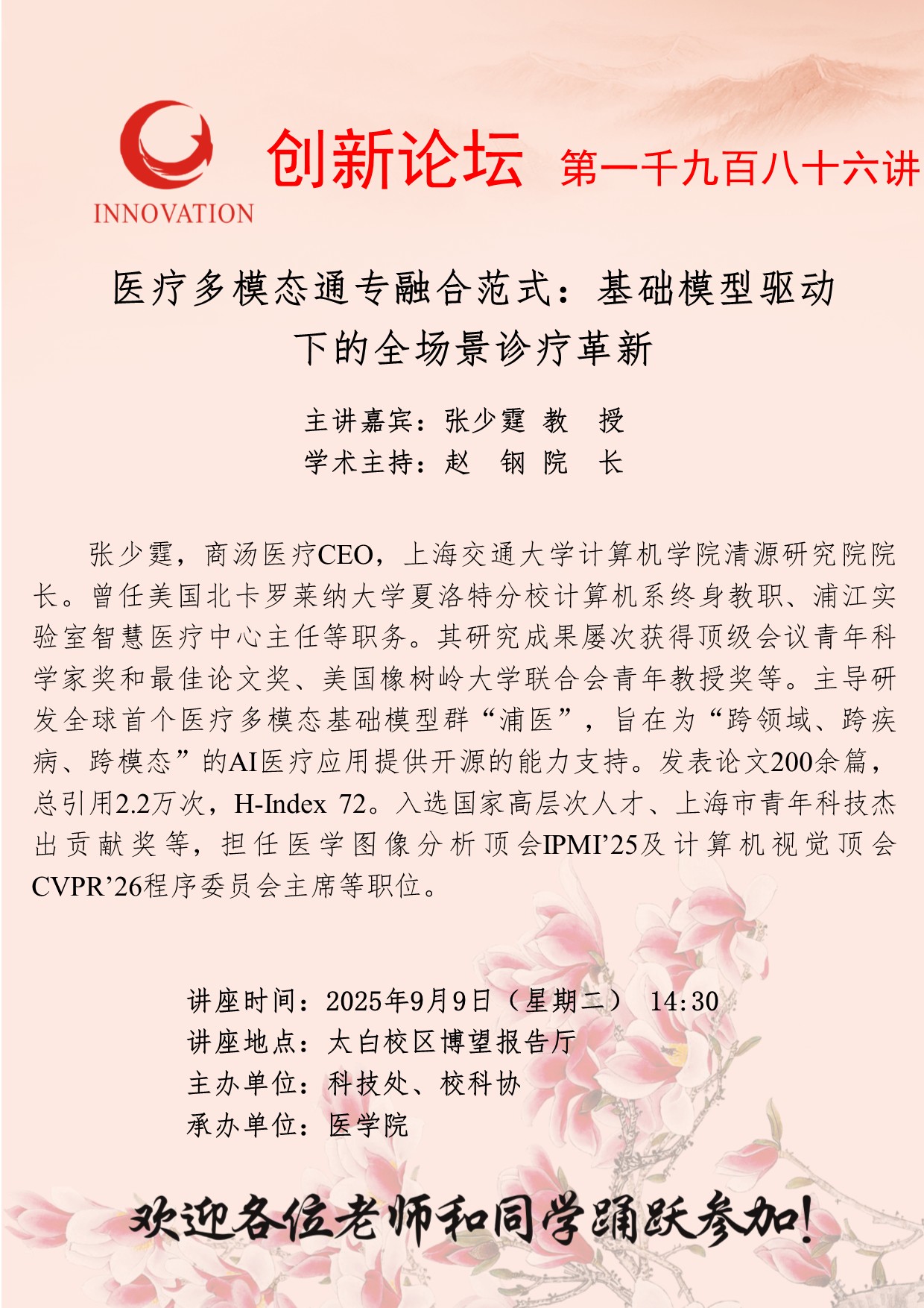 张少霆 教 授 米兰买球创新论坛第一千九百八十六讲:医疗多模态通专融合范式:基础模型驱动下的全场景诊疗革新 讲座时间 2025年9月9日(星期二) 14:30 讲座地点 太白校区博望报告厅 讲座人介绍 张少霆 教 授 讲座内容 fu