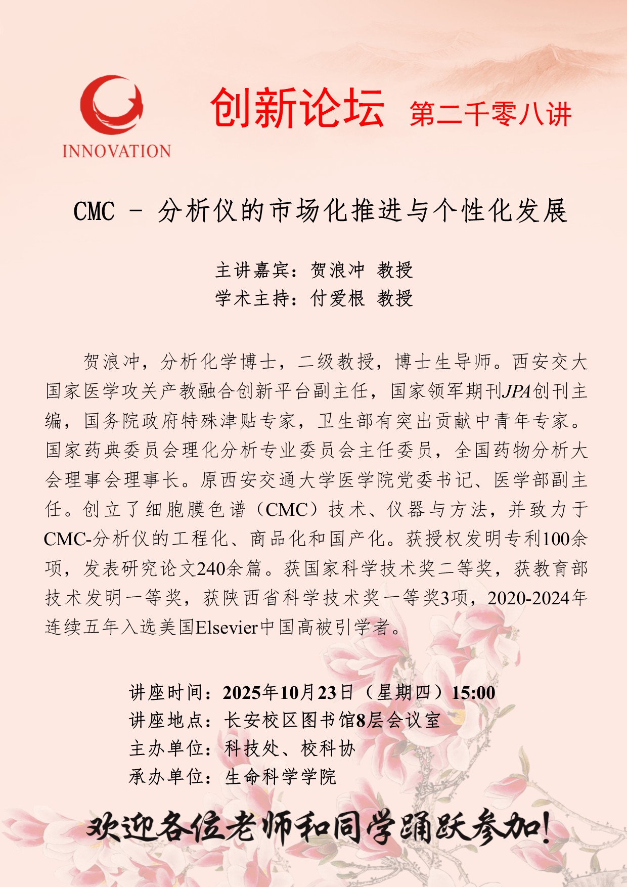 贺浪冲 教授 米兰买球创新论坛第二千零八讲:CMC - 分析仪的市场化推进与个性化发展 讲座时间 2025年10月23日(星期四)15:00 讲座地点 讲座地点:长安校区图书馆8层会议室 讲座人介绍 贺浪冲 教授 讲座内容