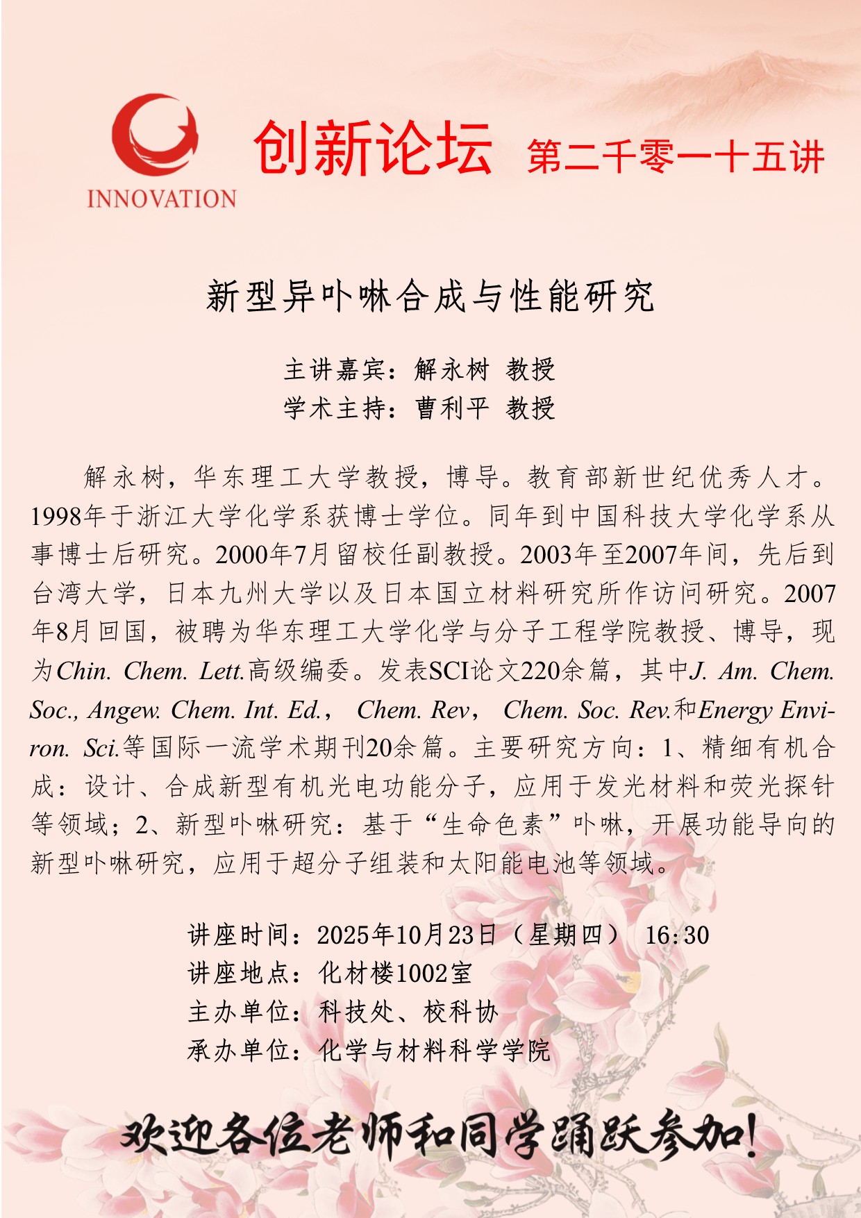 米兰买球创新论坛第二千零一十五讲:新型异卟啉合成与性能研究