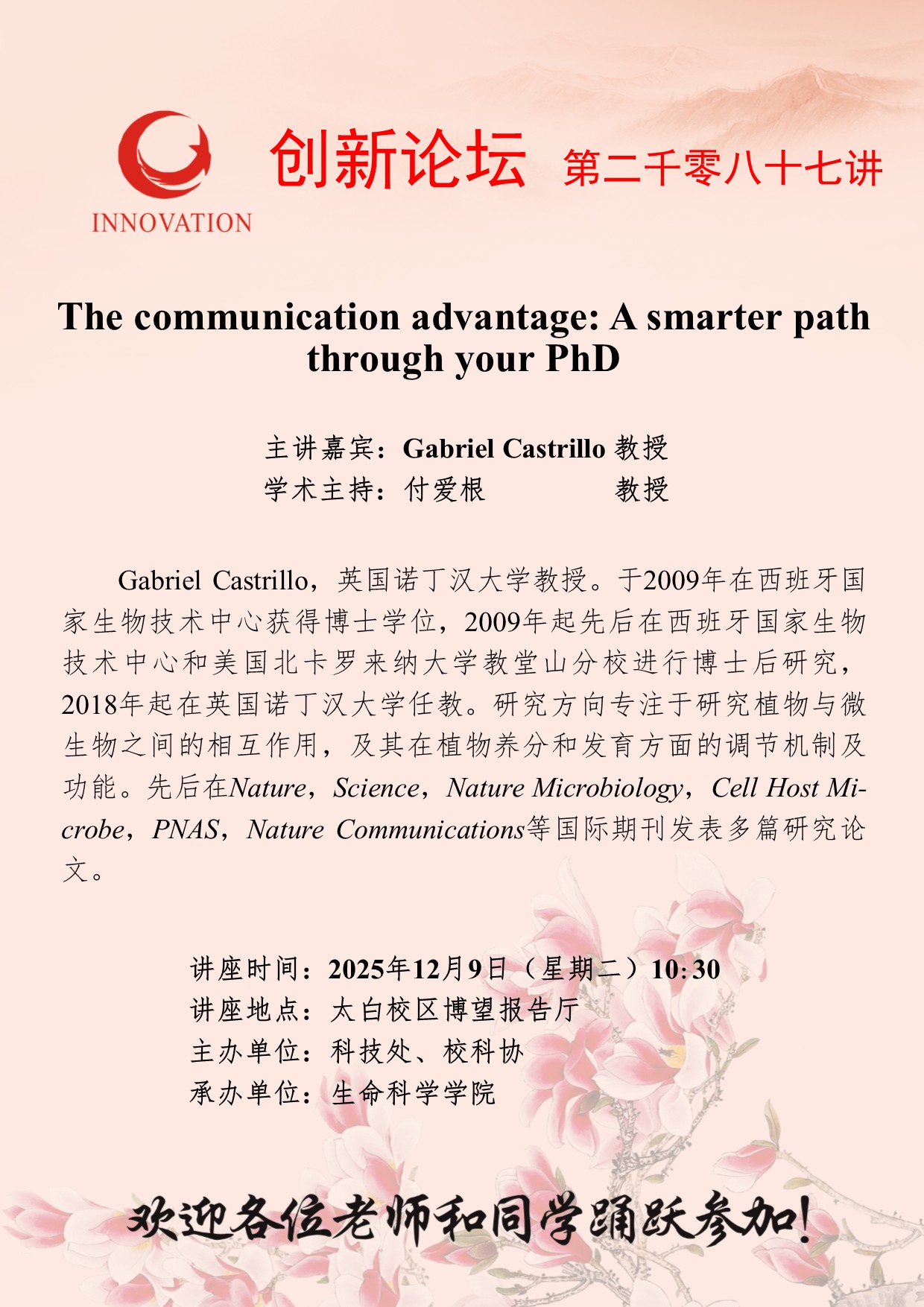 Gabriel Castrillo 教授 米兰买球创新论坛第二千零八十七讲:The communication advantage: A smarter path through your PhD 讲座时间 2025年12月9日(星期二)10:30 讲座地点 太白校区博望报告厅 讲座人介绍 Gabriel Castrillo 教授 讲座内容