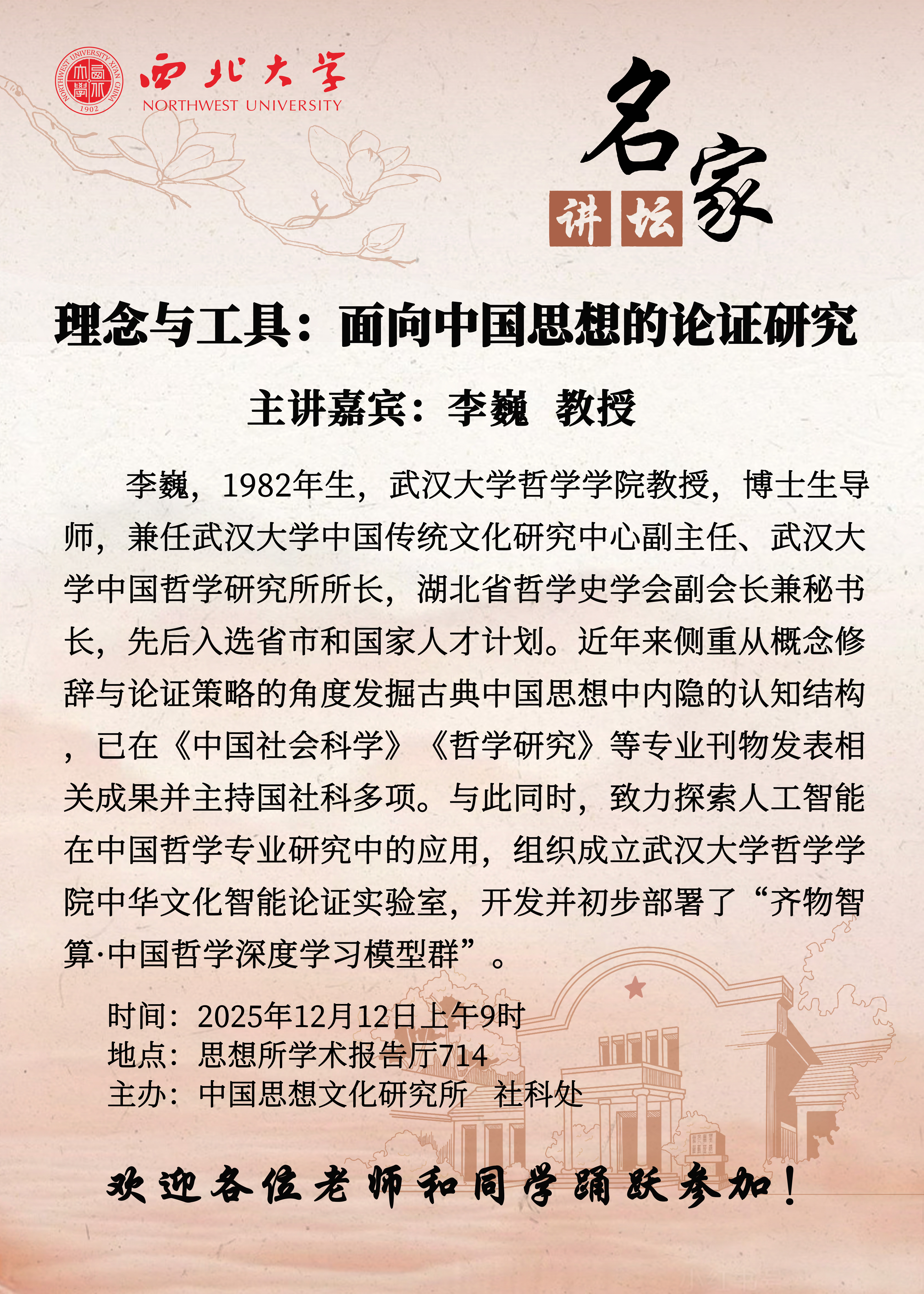 名家讲坛:理念与工具:面向中国思想的论证研究