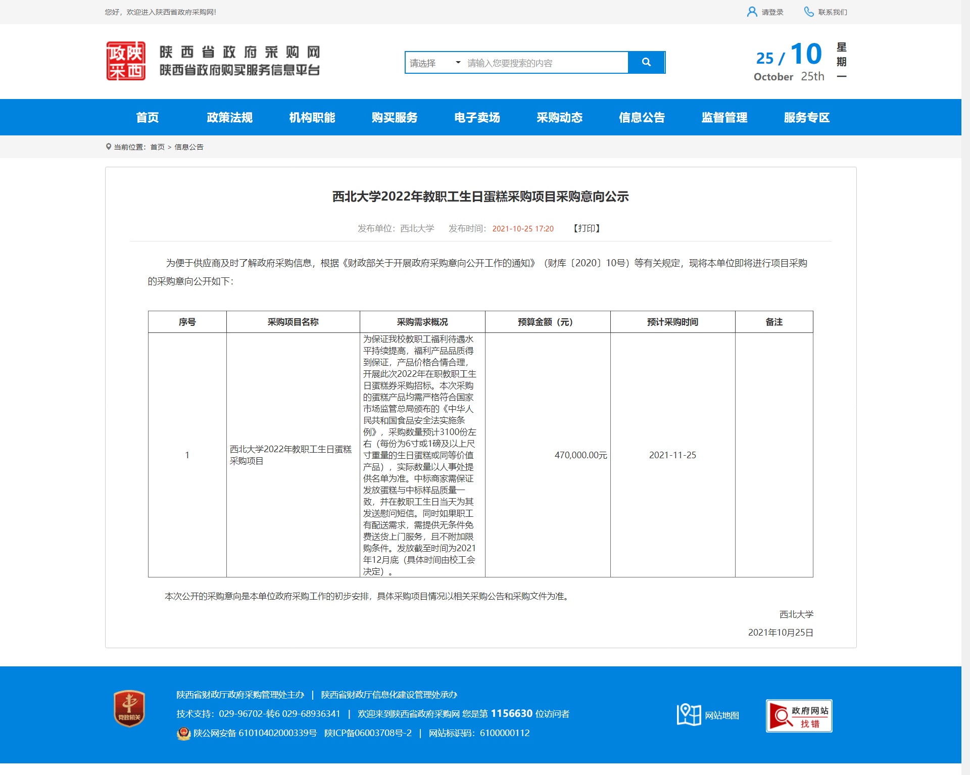 米兰买球2022年教职工生日蛋糕采购项目采购意向公示 作者: 编辑:薛利娟 时间:2021-10-25 原公告地址:http://www.ccgp-shaanxi.gov.cn/notice/noticeDetail.do?noticeguid=8a85be337c20d0b4017cb6bfc9ae33ff