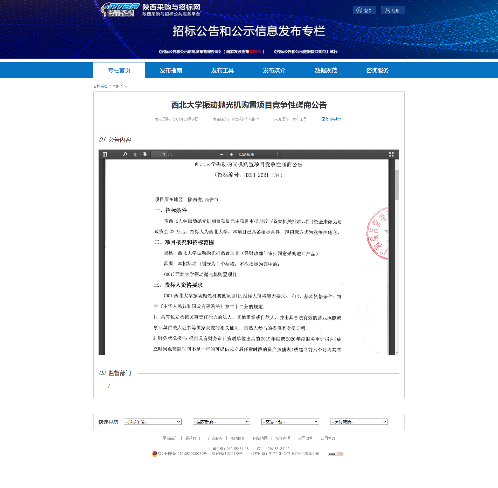 米兰买球振动抛光机购置项目竞争性磋商公告 作者: 编辑:薛利娟 时间:2021-10-29 原公告地址:http://bulletin.sntba.com/biddingBulletin/2021-10-29/358519.html
