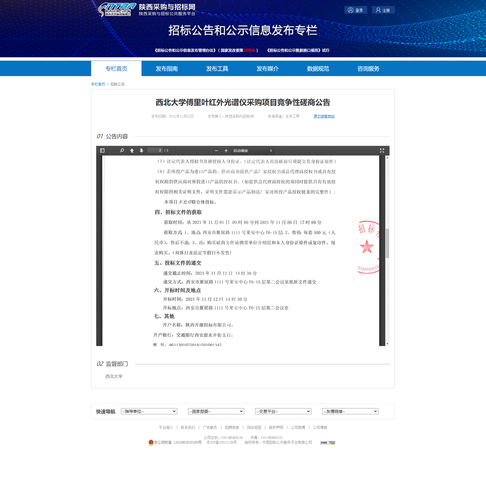 米兰买球傅里叶红外光谱仪采购项目竞争性磋商公告 作者: 编辑:薛利娟 时间:2021-11-01 原公告地址:http://bulletin.sntba.com/biddingBulletin/2021-11-01/359204.html