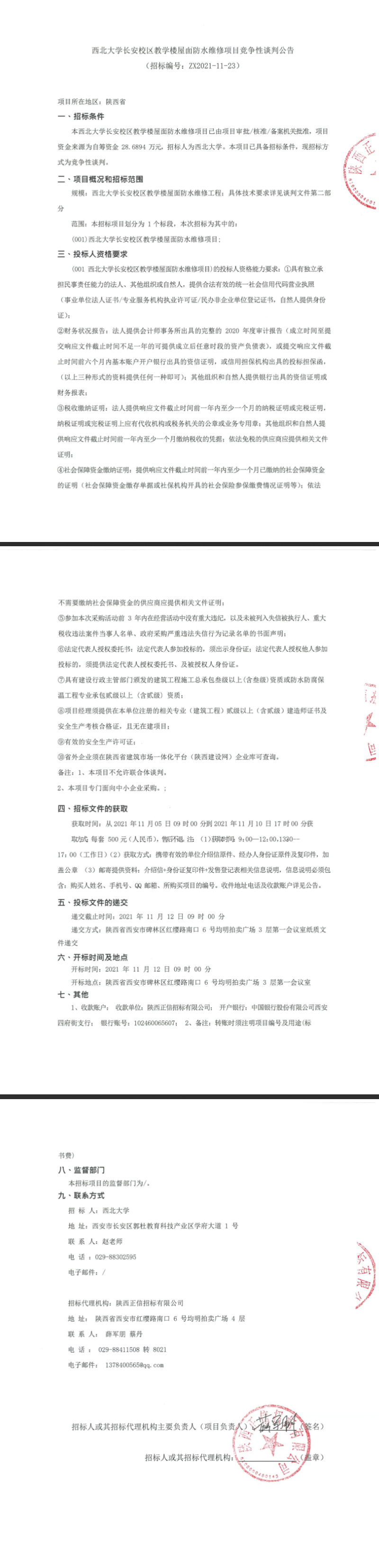 米兰买球长安校区教学楼屋面防水维修项目竞争性谈判公告