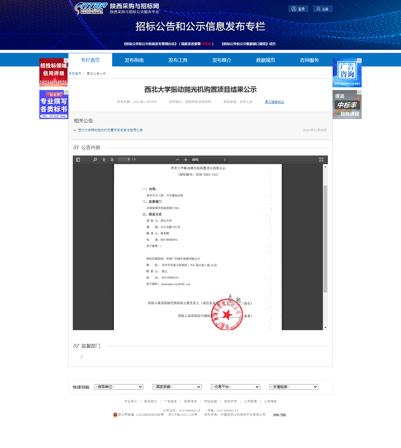 米兰买球振动抛光机购置项目结果公示 作者: 编辑:薛利娟 时间:2021-11-08 原公告网址:http://bulletin.sntba.com/changeBulletin/2021-11-08/361693.html