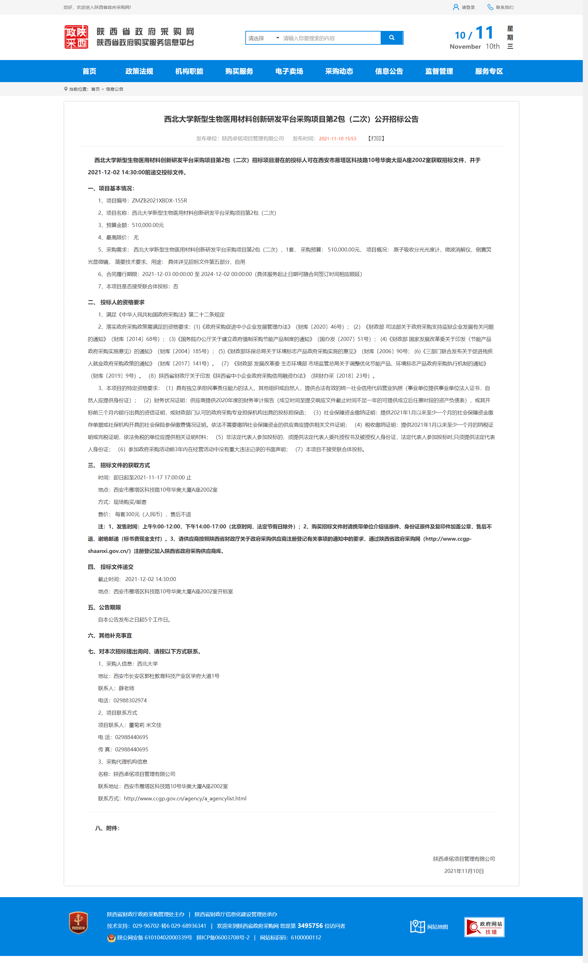 米兰买球新型生物医用材料创新研发平台采购项目第2包(二次)公开招标公告 作者: 编辑:薛利娟 时间:2021-11-10 原公告网址:http://www.ccgp-shaanxi.gov.cn/notice/noticeDetail.do?noticeguid=8a85be347cefc0a5017d07ed8f131470