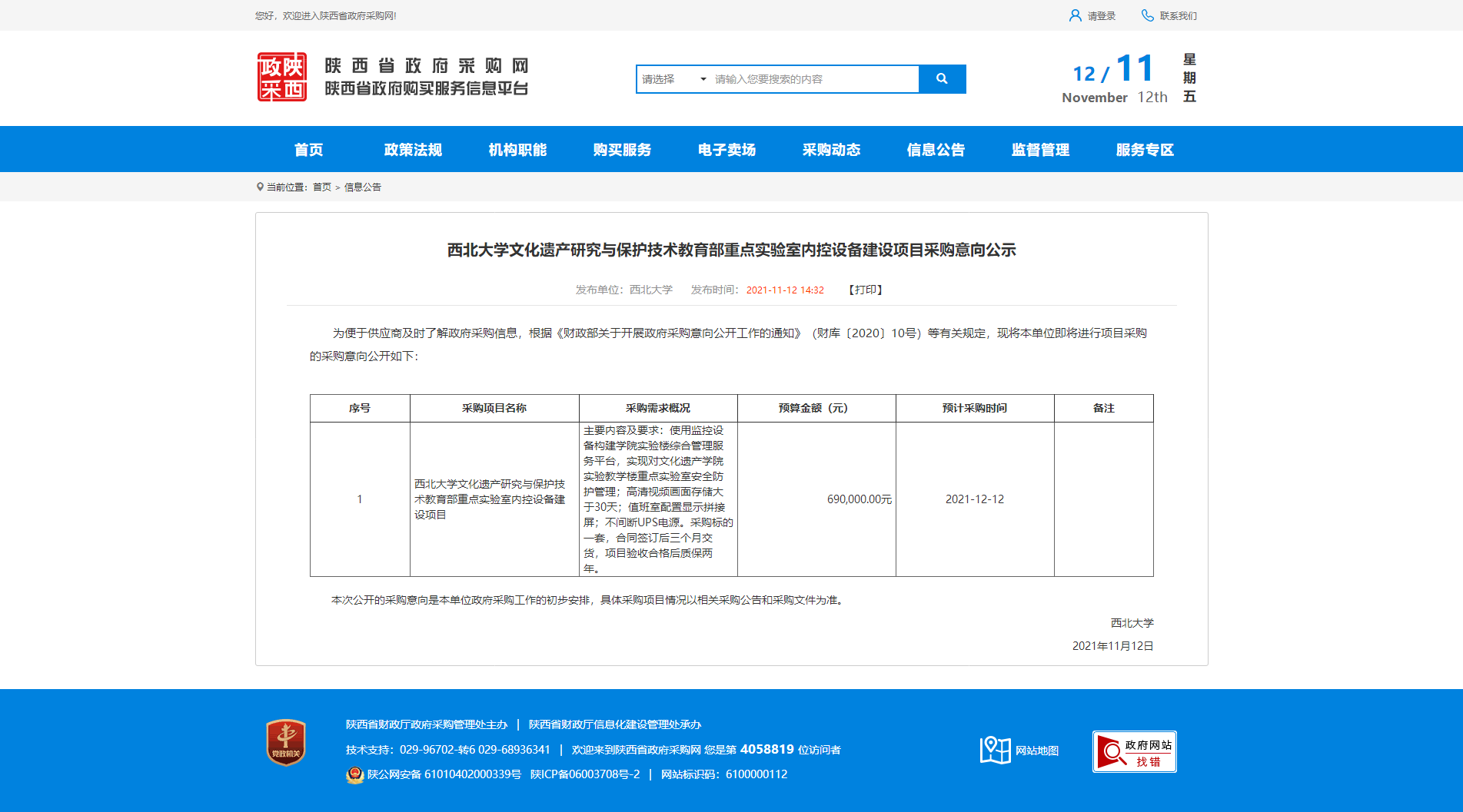 米兰买球文化遗产研究与保护技术教育部重点实验室内控设备建设项目采购意向公示
