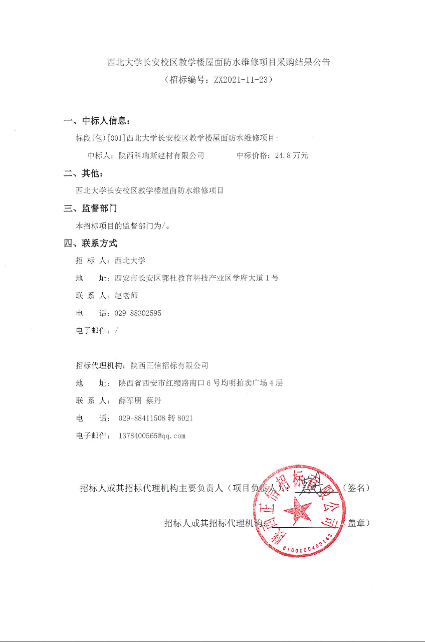 米兰买球长安校区教学楼屋面防水维修项目采购结果公告