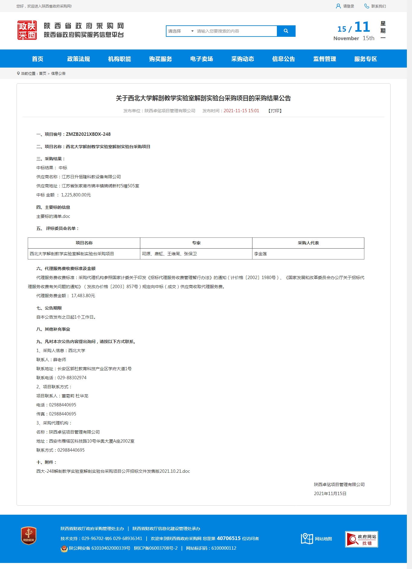关于米兰买球解剖教学实验室解剖实验台采购项目的采购结果公告 作者: 编辑:薛利娟 时间:2021-11-15 原公告网址:http://www.ccgp-shaanxi.gov.cn/notice/noticeDetail.do?noticeguid=8a85be347cefc0a5017d2265933b409c